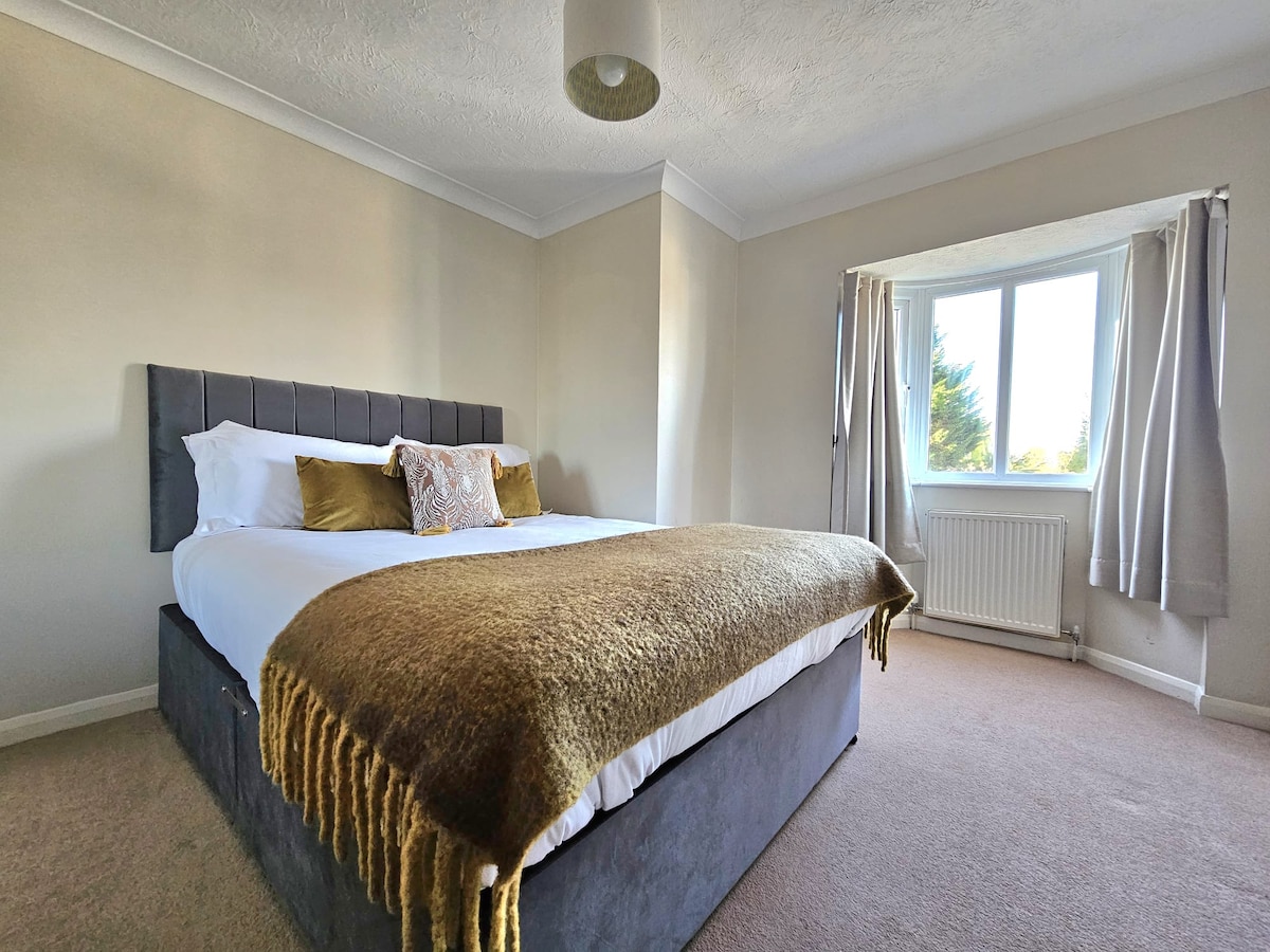 Goditi un'esperienza di lusso all'insegna dello stile in questo appartamento in centro. Ideale per viaggi di lavoro, ospiti singoli o coppie che vogliono esplorare Londra/Windsor. Accesso rapido alle principali autostrade a pochi minuti di distanza e a pochi passi dalla linea Queen Elizabeth 10 minuti a piedi dalla stazione di Slough A 17 minuti in treno dal centro di Londra 8 minuti in auto da Windsor 14 min - Aeroporto di Heathrow Caratteristiche *High Street a 6 minuti a piedi, con molti negozi e posti in cui mangiare *Cucina con servizi completi *Connessione a banda larga ad alta velocità