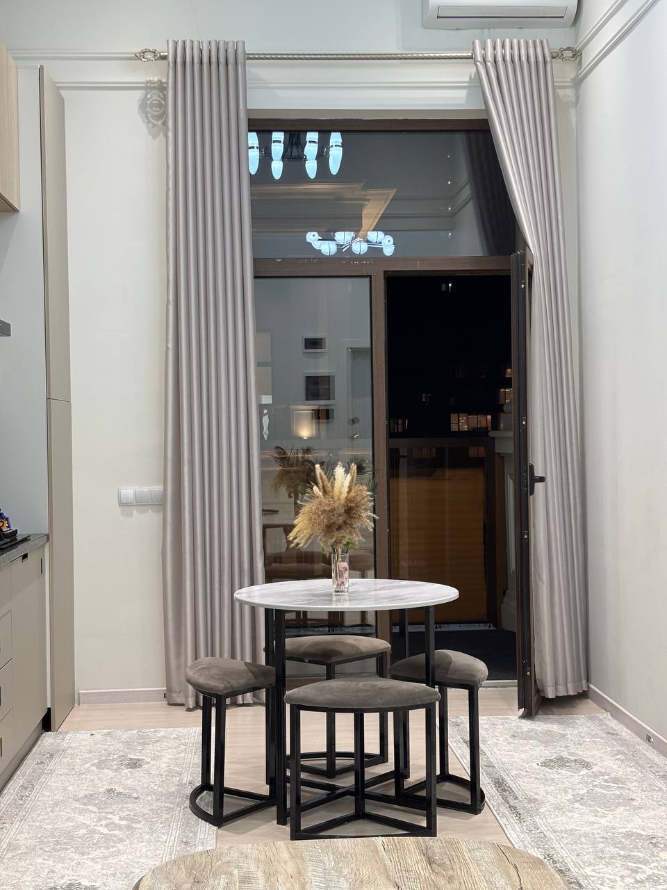 Стильная студия в новом здании Prestige Gardens, расположена в 5 минутах езды от аэропорта и Южного вокзала. - 1 двуспальная кровать - 1 раскладной диван - Свежий ремонт - Есть все для комфортного проживания: WIFI, Smart TV -Холодильник, стиральная машина - Оборудованная кухня - Кондиционер, утюг, фен - Бесплатная парковка возле здания - Станция для зарядки электромобиля - Удобное расположение, до центра города 10 минут езды - Наличие ресторанов и супермаркетов поблизости