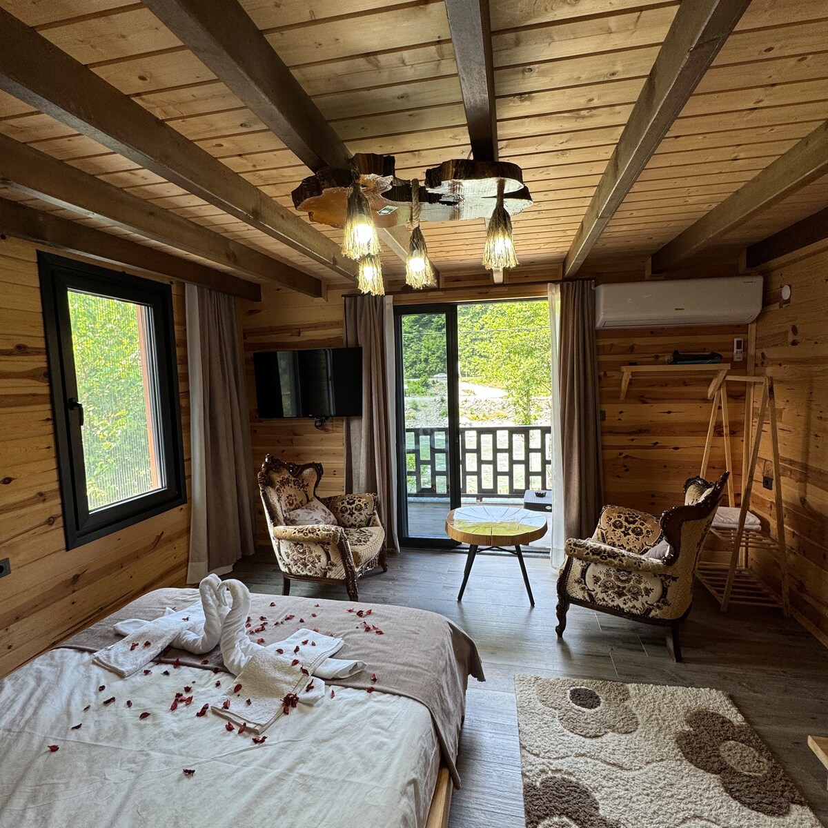 Orman, dere, dağ ve vadi manzarası eşliğinde sessiz ve sakin bir tatil vaad ediyoruz. * Modern ve geleneksel tasarımın bir arada kullanıldığı tesisimizde her detay misafirlerin konforu için düşünüldü. Siz tatilin keyfini çıkarırken rahatlığınız ve güvenliğiniz için biz herşeyi düşünüyoruz. * Eşsiz manzarada yöresel lezzetler, sıcak servisler ve kontinental çeşitlerle kahvaltınızı yapabilirsiniz.