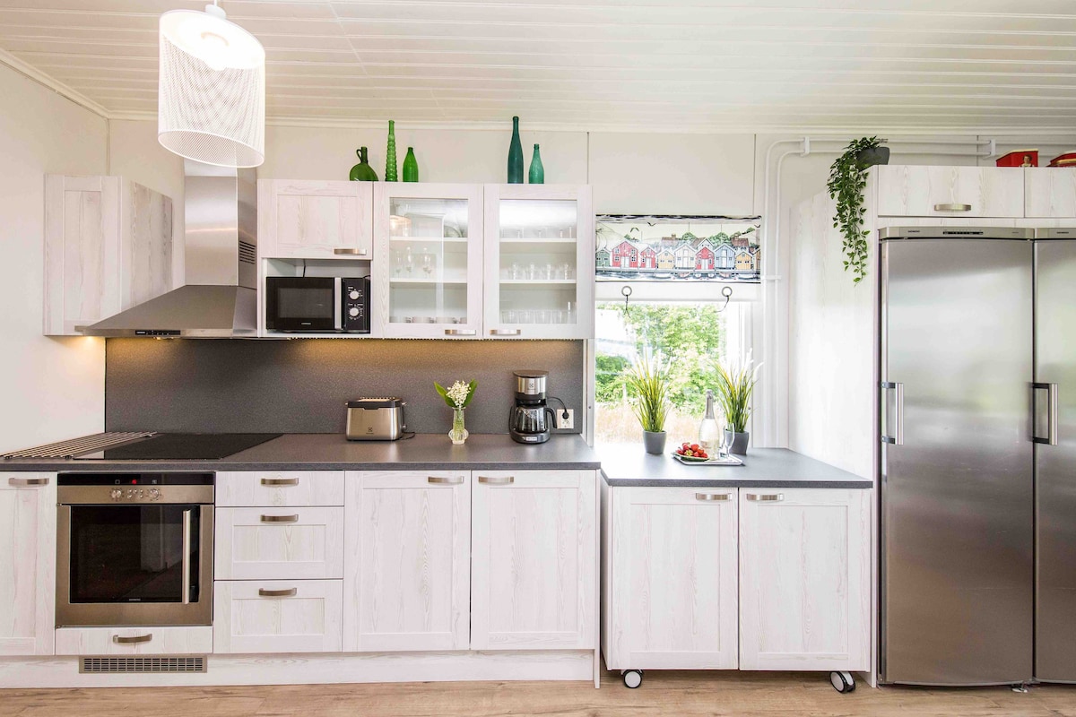 Piccola casa di lusso con splendida vista sul mare. Dalla sauna si scende a pochi passi dal mare, dove è possibile fare un tuffo sia in estate che in inverno! La piccola cucina è dotata di un forno a microonde, un frigorifero, un piano cottura a induzione e una macchina per il caffè. In casa c'è una lavatrice.