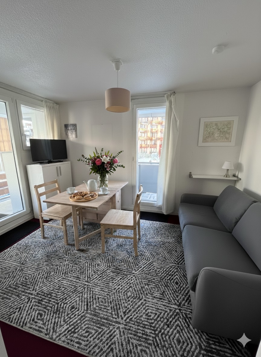 Monolocale cabina ristrutturato di 17mq, ideale per 2 persone, ma può ospitare 4 persone Dispone di 4 posti letto, un divano letto matrimoniale nel soggiorno e 2 letti a scomparsa nell'ingresso A 2 minuti a piedi dagli impianti di risalita (150m) e vicino a tutti i negozi, una fermata delle navette gratuite è proprio davanti alla residenza L'appartamento dispone di lavastoviglie, macchina per il caffè, tostapane e bollitore, nonché di un armadietto per gli sci Sono inclusi lenzuola, asciugamani e pulizie Wi-Fi gratuito