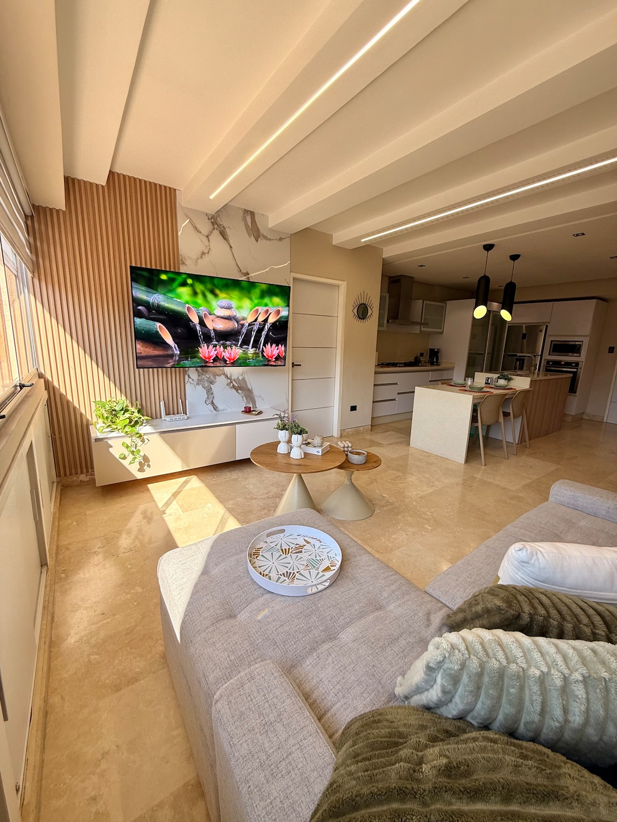 Vive una experiencia de alojamiento con estilo, confort y buen gusto. Este apartamento ha sido diseñado pensando en quienes valoran los detalles, el ambiente y la funcionalidad. Ideal para familias o ejecutivos que buscan un espacio acogedor, moderno y con todas las comodidades para descansar o trabajar desde casa. Desde que entres, notarás el equilibrio perfecto entre diseño y calidez. La sala de estar cuenta con un moderno mueble de entretenimiento y un Smart TV de 55”