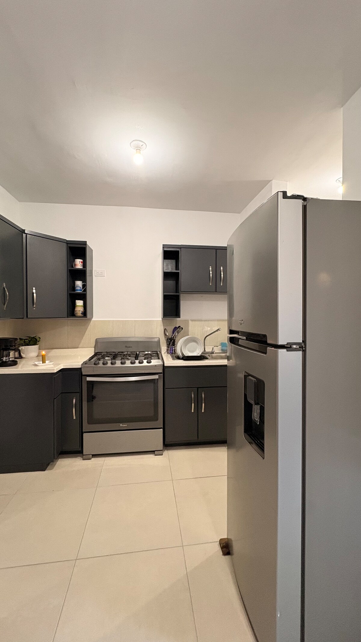 Appartamento completo con 1 camera da letto a 10 minuti dall'Aeroporto Internazionale Mariano Escobedo e a 10 minuti dal centro di Apodaca; la camera ha il proprio bagno e armadio. L'appartamento si trova al terzo piano, quindi bisogna salire delle scale. Nel soggiorno ci sono un divano letto e una televisione; l'alloggio dispone di una cucina attrezzata, e l'unica cosa in comune è la zona lavanderia al piano terra. È un quartiere privato, quindi è necessario un codice per entrare nella suddivisione; è molto sicuro e tranquillo,