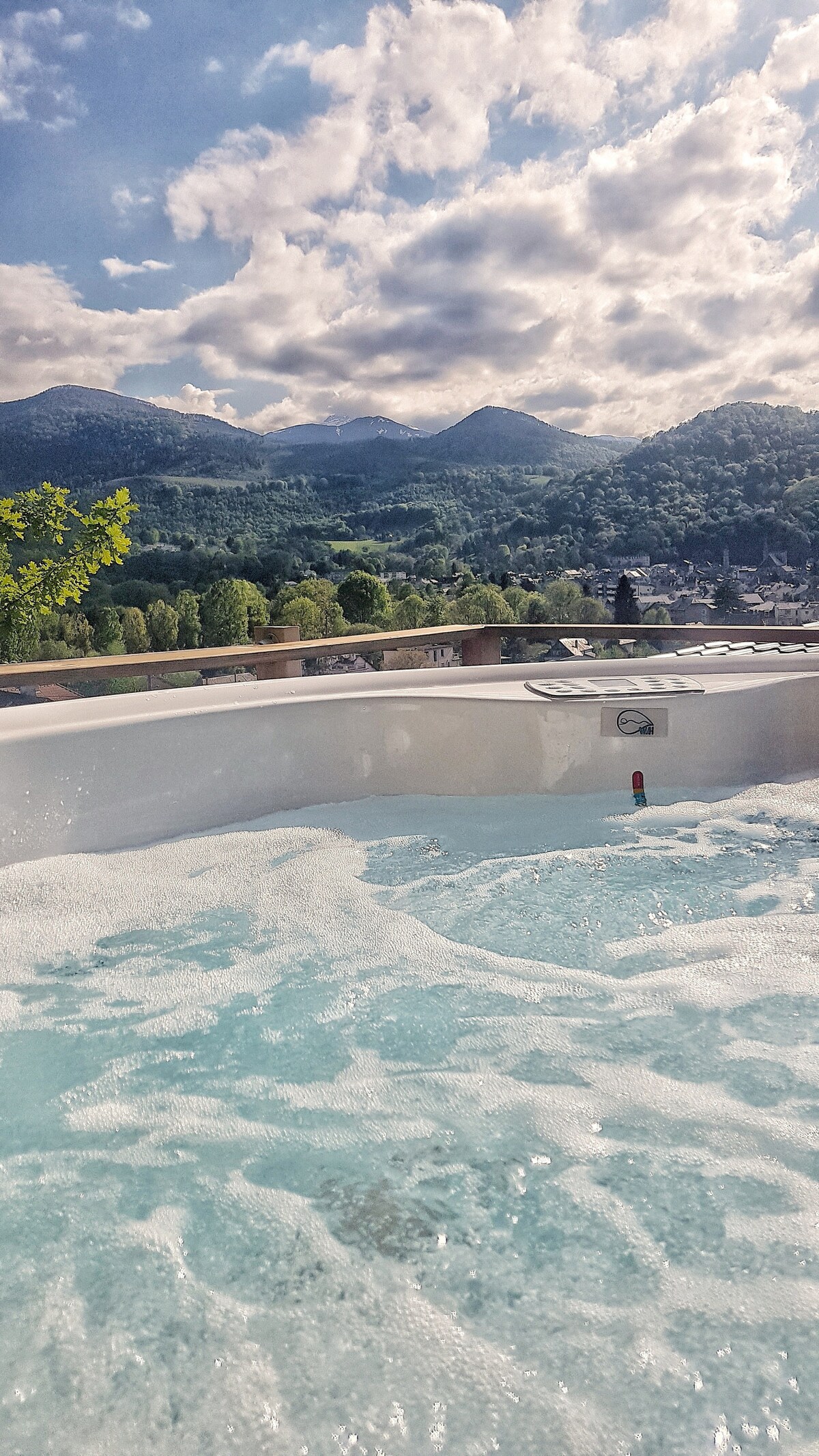 Chalet in legno, arroccato a 3,5 m ai margini della riserva naturale del Pibeste. Venite a trascorrere 2 notti in coppia o una settimana in famiglia in un ambiente esotico e confortevole. Dotato di una piccola cucina, 2 camere da letto aperte, biancheria da letto 160, bagno e servizi igienici normali, una terrazza con vista sulle vette e una vasca idromassaggio privata, TV. La colazione del primo e dell'ultimo giorno è inclusa. Chalet per 2 adulti e 1 bambino, ideale per coppie, escursionisti.