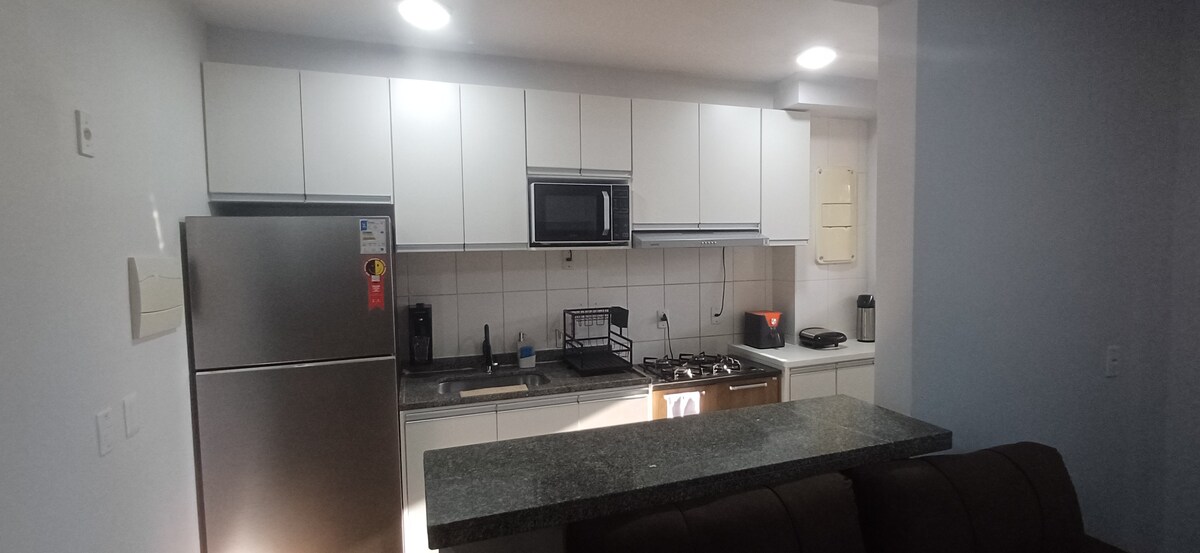 Accogliente appartamento al 2° piano, in condominio chiuso, con 1 posto auto, portineria 24 ore, ascensore e area relax con piscina (che deve essere concordata in anticipo con la padrona di casa), al confine con il Distretto Federale. L'alloggio dispone di serratura digitale, wi-fi, smart tv, posto per studio/lavoro, doccia igienica in bagno, frigorifero, pentole, comodo letto matrimoniale e letto singolo king. NON offriamo asciugamani da bagno.
