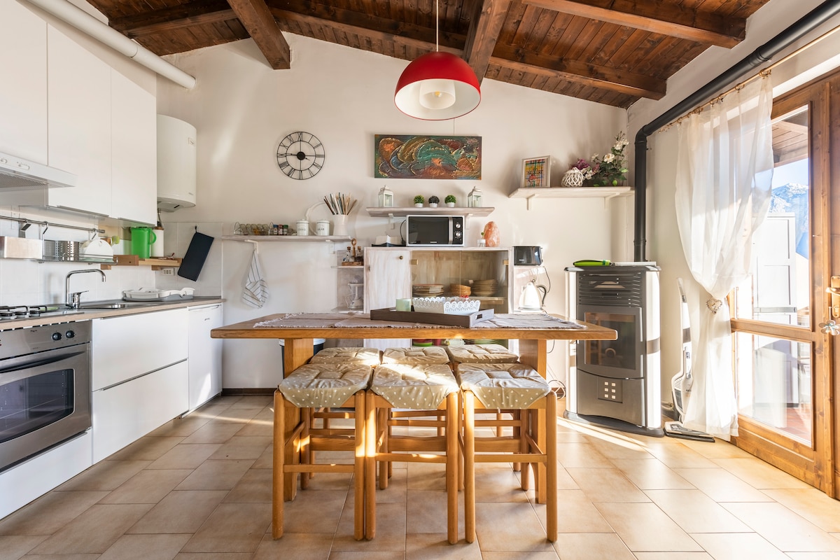 La suite è a poche decine di metri dal centro, raggiungibile con mezzi pubblici, circondata dal verde per attività con la famiglia, panoramica, luminosa e molto ben esposta. Ha soffitto con travi a vista, un balcone per cenare vista lago, una veranda panoramica con dondolo caratteristico per i momenti relax. Ha dimensioni adatte per famiglie con bambini e piccoli animali domestici. Se sei ciclista, biker o sportivo, puoi usare il deposito per le tue attrezzature/moto.