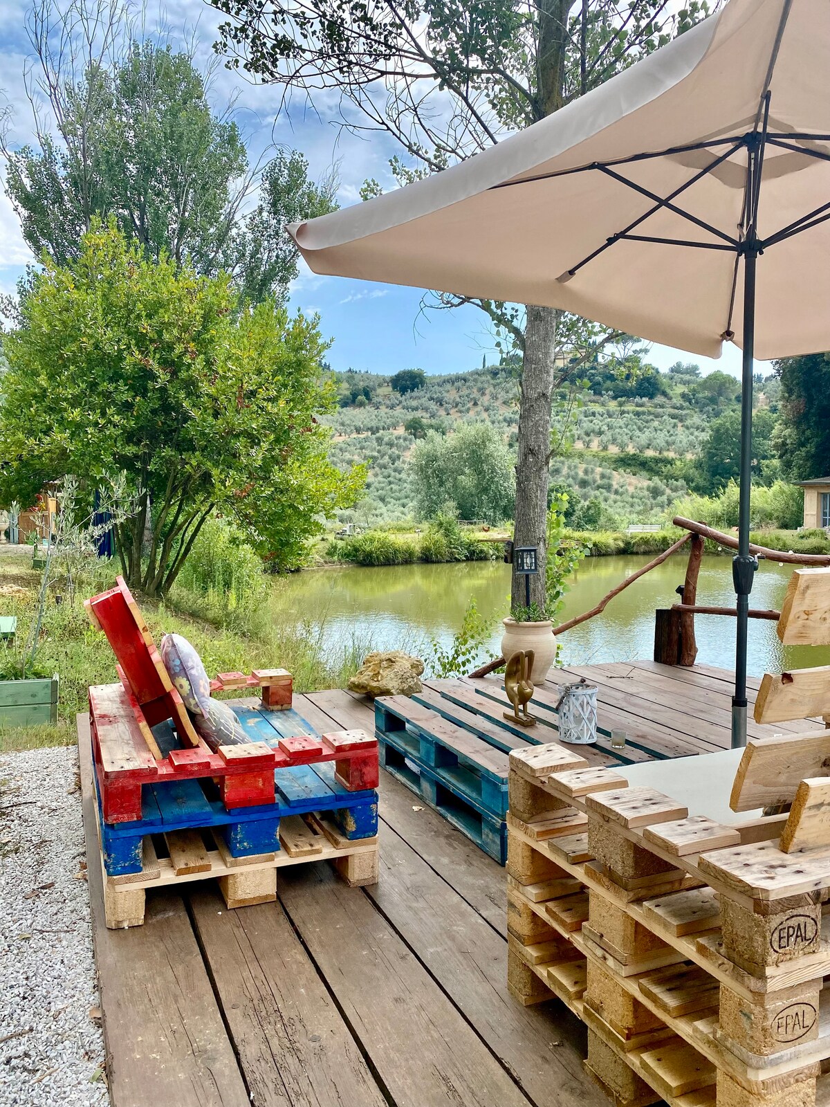 Camera con bagno indipendente, cucina esterna, giardino recintato con accesso indipendente. Biancheria Letto inclusa. Bike friendly. Location ideale per un soggiorno rilassante tra le colline toscane, a pochi km da località balneari come Marina di Cecina, Castagneto Carducci, Bibbona e Isole. La camera con cucina in veranda aperta con vista sul Biolago Naturale dell'agriturismo. Gli ospiti possono usufruire del solarium e Barbecue sul lago e del prezioso contatto con gli animali. Noleggio Bike.