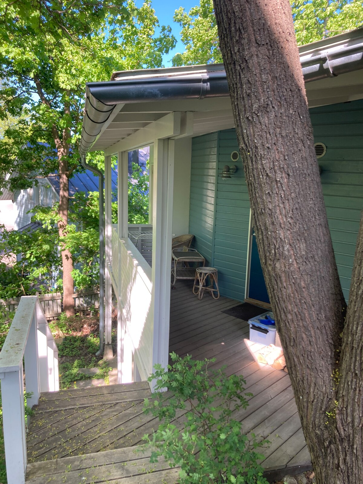 Entra attraverso una porta privata sul retro, che si affaccia sul giardino. La casa con intelaiatura in legno che si trova sopra l'appartamento seminterrato è stata costruita negli anni '30. Si trova in una strada tranquilla circondata da case in legno simili. L'appartamento è adatto a una persona, a una coppia o a una giovane famiglia di quattro persone, e offre un letto matrimoniale e un divano letto. Avrai accesso a bagno, servizi igienici e sauna. Un piccolo salotto e una zona pranzo separata serviti da una cucina e una lavanderia (lavatrice e asciugatrice) con elettrodomestici di grandi dimensioni.
