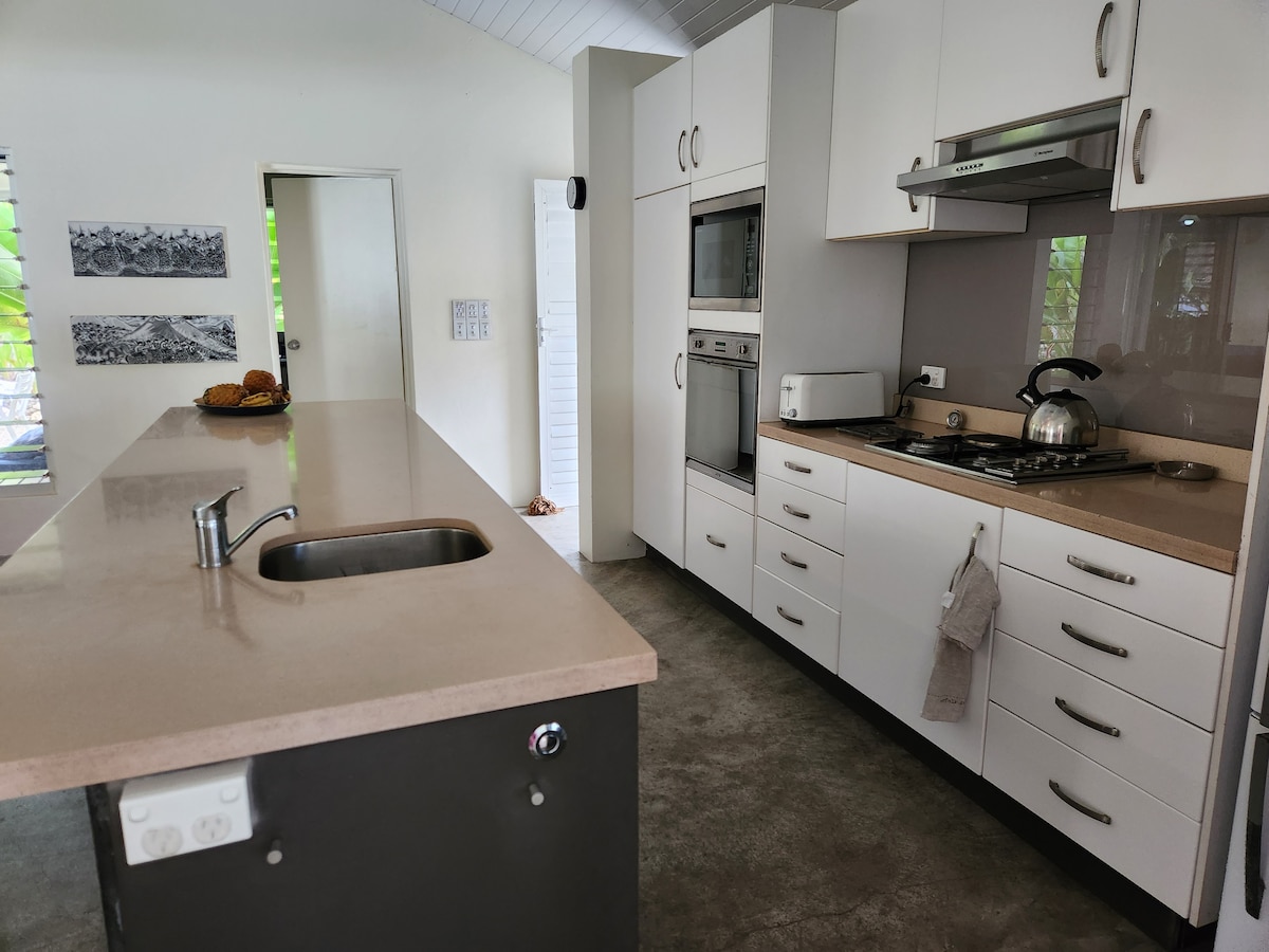 Aperto il 24 ottobre con tutti i comfort di casa e una cucina completamente attrezzata. Situato su un ettaro con vista sulla spiaggia e vista panoramica sulla splendida baia di Teouma. Creato come "rifugio per coppie", non solo come soggiorno, ma anche come esperienza. Addormentati al suono rilassante delle dolci onde dal tuo comodo letto matrimoniale grande, poi svegliati alla splendida vista della baia. Rinfrescati nella piscina naturale cristallina direttamente di fronte o fai snorkeling ed esplora la splendida barriera corallina, a pochi metri dalla tua spiaggia.