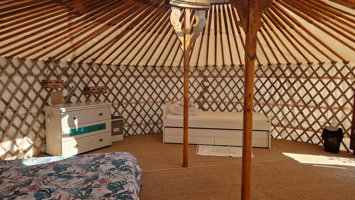 bella tenda yurta nel cuore di una fattoria equestre. Il canto delle cicale per accompagnarvi , venite a scoprire la nostra bella regione. la tenda può ospitare 4 posti letto permanenti ed eccezionali fino a 6 . disporre di uno spazio esterno privato, posto auto. possibilità di noleggiare biciclette, auto , servizio stazione possibile . siamo sia in campagna che vicino alla città , tutti i negozi nelle vicinanze, il macs e il mare a 45 min.