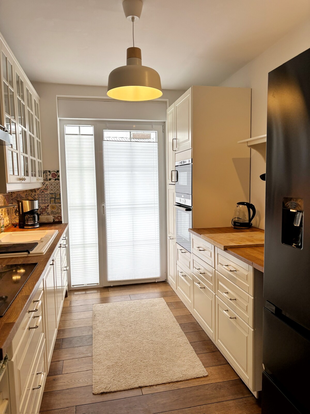 Casa unifamiliare in una posizione privilegiata e verde. Idilliaco giardino opaco (1.700 m²) con alberi secolari, due terrazze e un cortile interno parzialmente coperto e arredato. Su 150 m² di superficie abitabile avete un ampio soggiorno e sala da pranzo, tre camere da letto, camere per gli ospiti e bagno in marmo. La casa si trova in una strada senza uscita, il centro è raggiungibile a piedi.