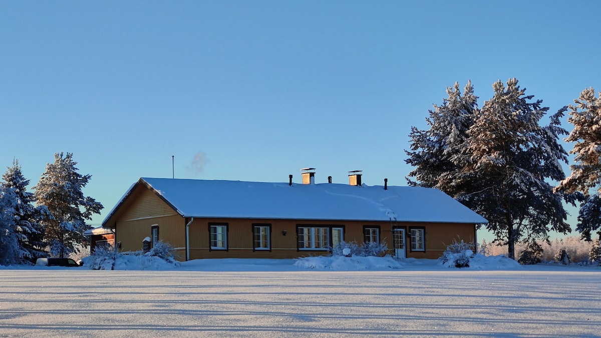 Casa accogliente nel cuore di Leppävirta. Adatto sia per piccoli che per grandi gruppi: 10 posti letto (6 letti, riposo materasso). Il cortile può ospitare diverse auto e può essere parcheggiato anche un camion. Nonostante la sua posizione, la casa e il cortile sono tranquilli. C'è molto da fare per i bambini. Gli animali domestici sono i benvenuti. Il ristorante più vicino è a 30 metri e il negozio di alimentari a 130 metri. Sono incluse lenzuola e asciugamani. Solo per soggiorni. Per saperne di più: Cose da considerare in inverno. Benvenuti!!