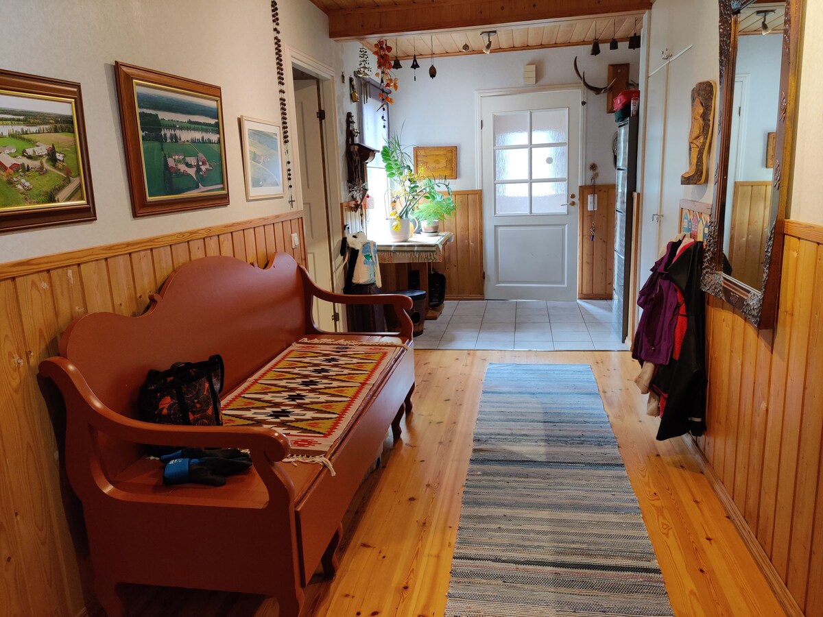 Kodikas talo Leppävirran ydinkeskustassa. Sopii sekä pienelle että isolle porukalle: nukkumapaikkoja 10 (6 sänkypaikkaa, loput patjapaikkoja). Pihaan mahtuu useampikin auto ja parkkiin saa myös kuorma-auton. Sijainnistaan huolimatta talo ja piha ovat rauhalliset. Lapsille paljon tekemistä. Lemmikit ovat tervetulleita. Lähimpään ruokapaikkaan 30m ja ruokakauppaan 130m. Lakanat ja pyyhkeet kuuluvat hintaan. Vain majoitukseen. Lue tarkemmasta esittelystä: Talvella huomioitavaa. Tervetuloa!