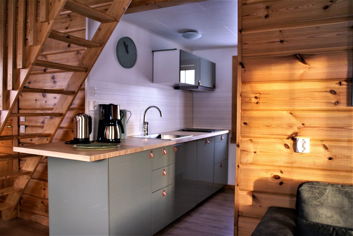 Welcome to the west facing apartment of the Rustic Haven house! Relax and enjoy your own fully equipped private apartment with a full bathroom, newly renovated kitchenette, Chromecast TV, a grass patio and beautiful views of the yard and nearby forest, which sets a calming tone for your stay. We provide bedding, towels and some firewood. Breakfast is available for 130 SEK per person which will be delivered to your door at the time you request between 7-9:30am.