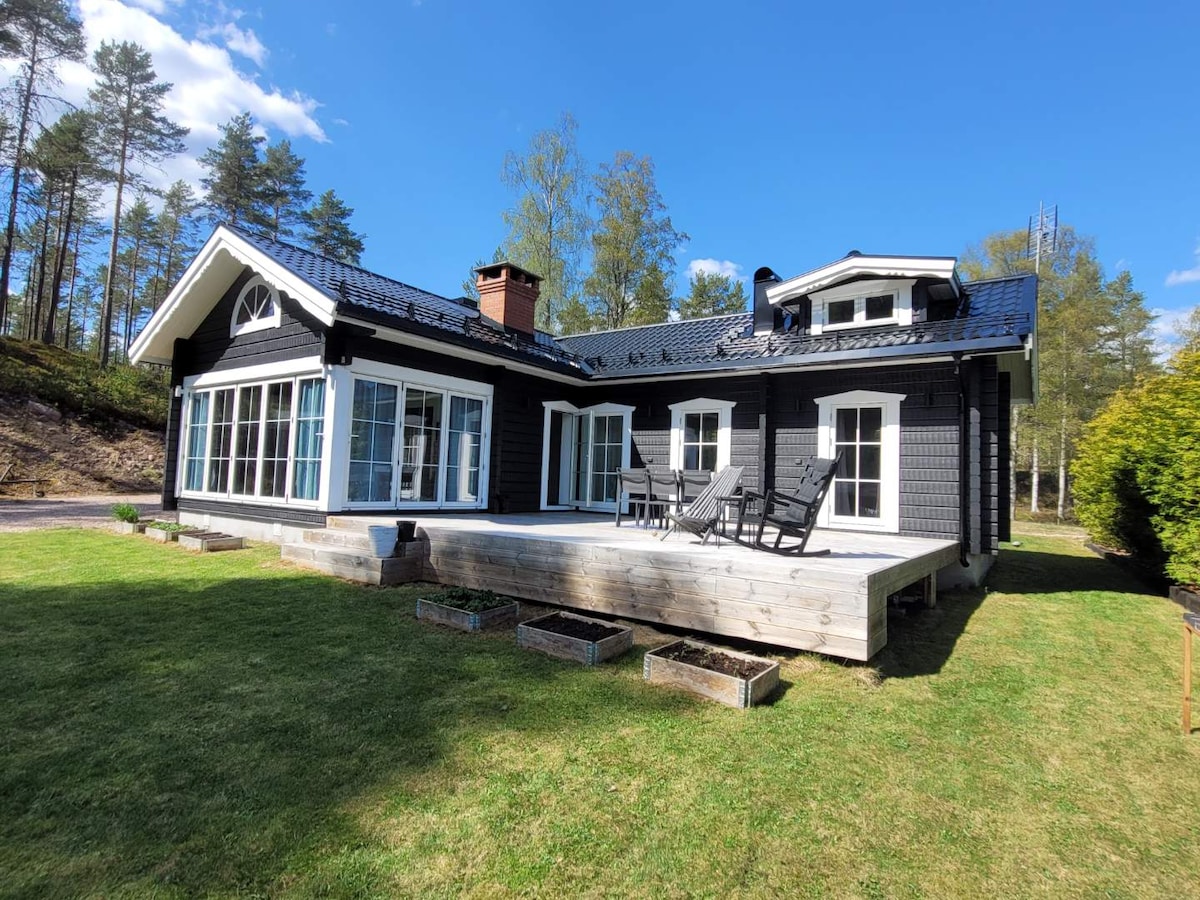 Una casa moderna con una vista mozzafiato dall'ampio portico e una splendida vista sul lago. La pensione di nuova costruzione è grande, luminosa e spaziosa con soffitti alti e caminetto. I letti appena fatti e la pulizia sono inclusi. Spiaggia privata con accesso a barca a remi, canoa e SUP. Sono disponibili anche biciclette. Possibilità di sauna a legna con bagno di ghiaccio proprio in riva al lago a basso costo. Torsby skitunnel a soli 5 minuti. Piste da sci invernali proprio dietro l'angolo se nevica.