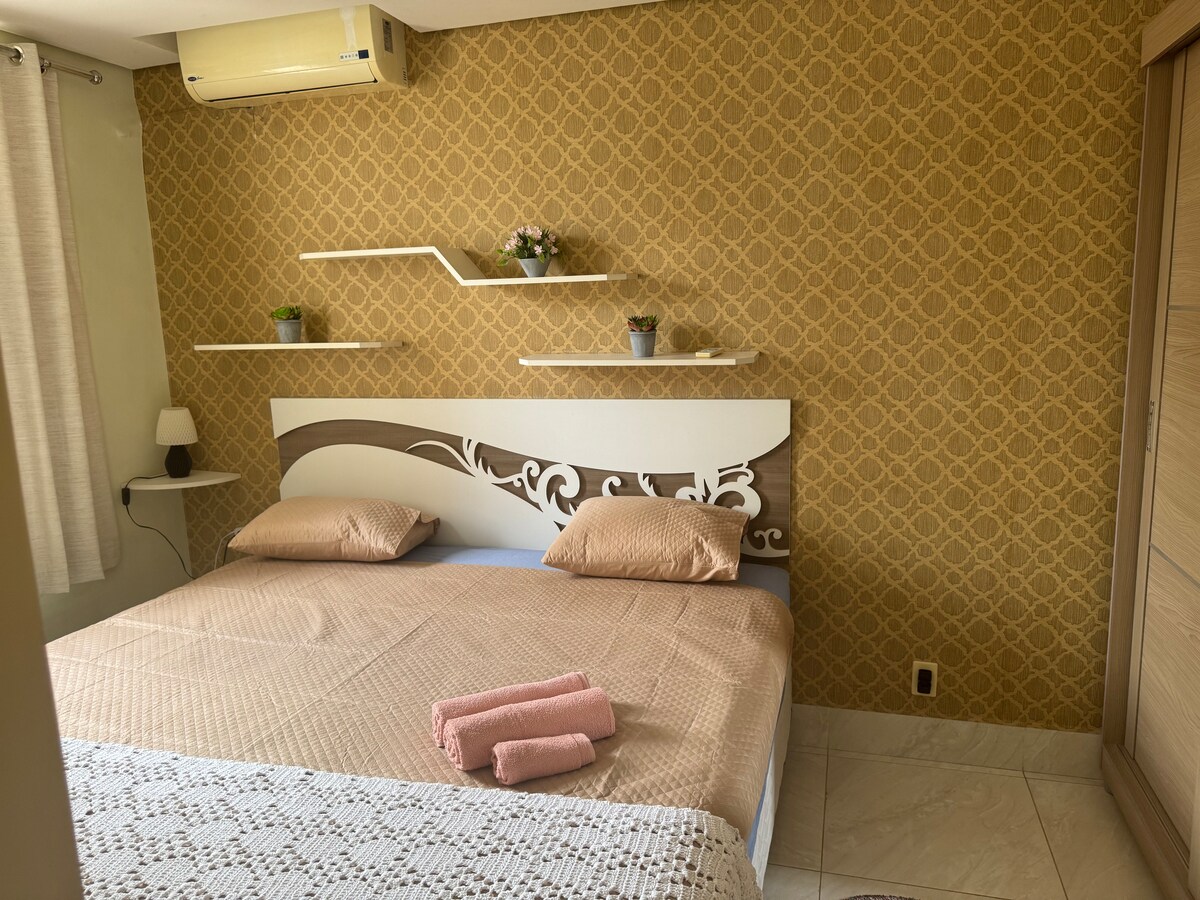 Comfort e Convenienza: Appartamento a Várzea Grande, Vicino a Musiva, Aeroporto e Univag, con Mobili Progettati, Lampade, aria condizionata in entrambe le camere, bagno con blindex, letto matrimoniale e fornelli, airfryer, per una migliore esperienza. Appartamento ben posizionato e facilmente accessibile, il condominio dispone di una lavanderia a servizio automatico che può essere noleggiata dall'ospite stesso.