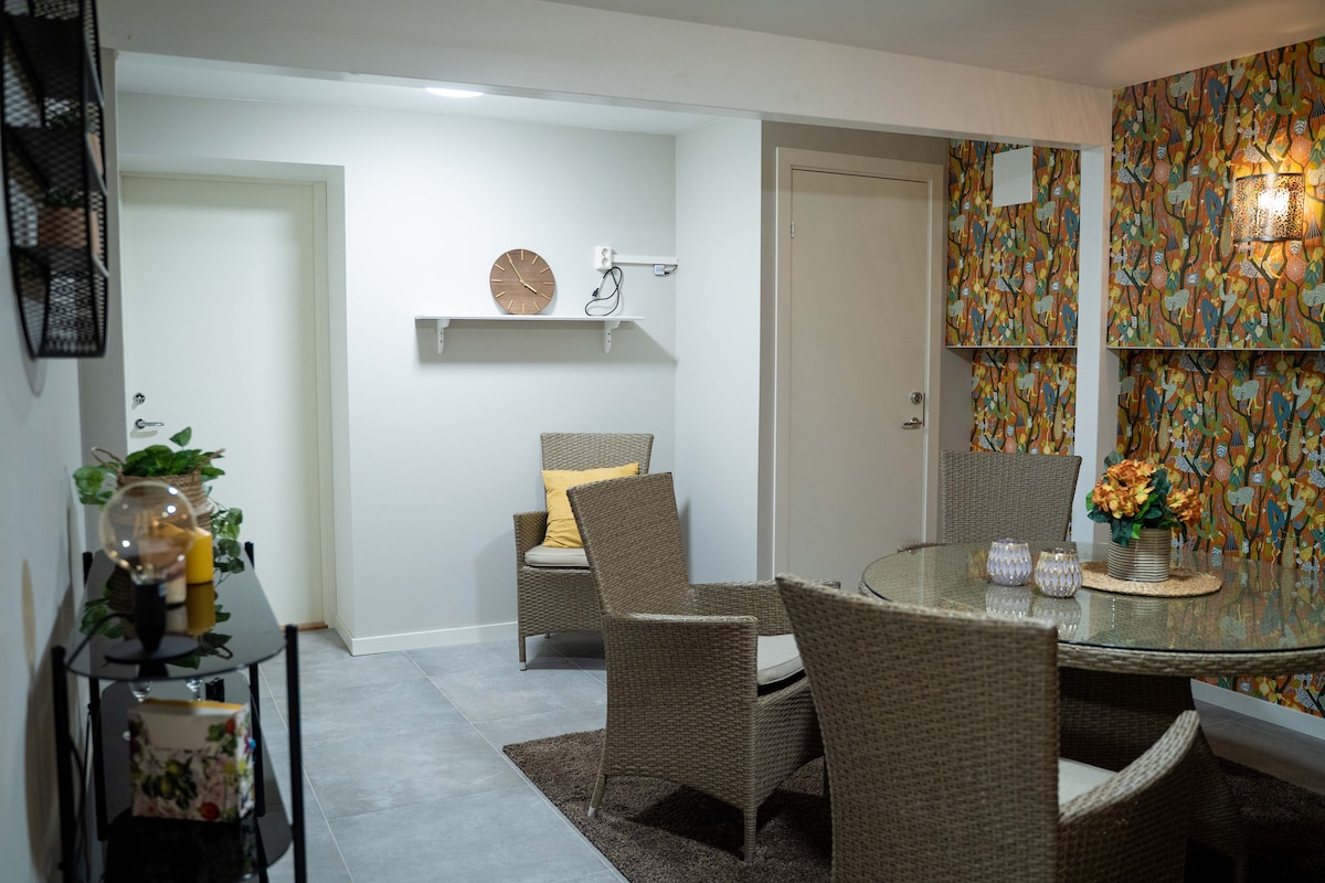 Accogliente seminterrato: 3 camere e cucina vicino a Slottsskogen