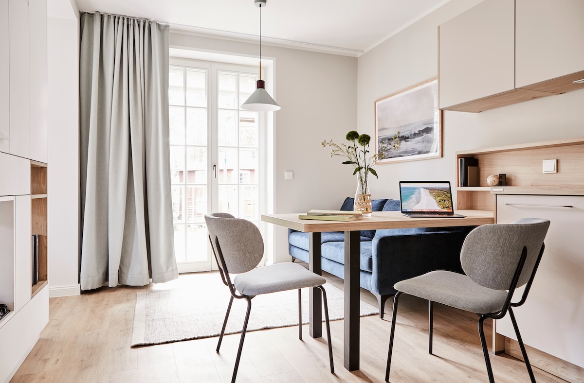 Surrounded only by meadows and fields, hidden behind the village pond, lies the small manor estate with its main house and old stables. For the past five years, we’ve been carefully restoring it, breathing new life into the 1899 estate. On the upper floor of the manor house – a brick building typical for the region – a spacious, light-filled 114 sqm apartment is waiting for you. The old beams are visible once again. The interior is simple and doesn’t distract.
