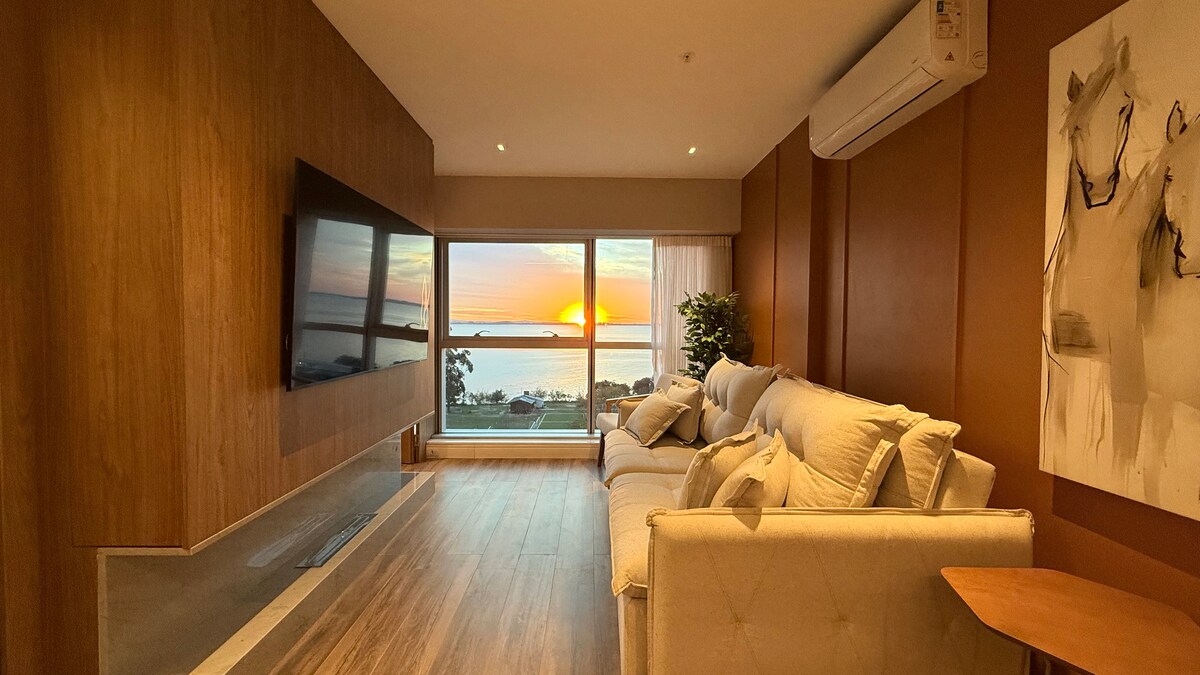 Nuovissimo monolocale di 43 m² a TREND CITY, splendida vista panoramica (16° piano) sul lago Guaíba, sulla riva del lago e sul parco Marinha, condominio con infrastrutture complete, portineria 24 ore su 24, parcheggio, palestra, piscina riscaldata di 20 m. Letti queen size, spazio per lavorare con laptop, aria condizionata calda e fredda 24.000, Smart TV 50, TV via cavo HD con 250 canali, Wi-Fi 250 Mbps, barbecue, lavatrice e asciugatrice, ferro da stiro, asciugacapelli, forno a microonde, friggitrice ad aria e serratura elettronica.