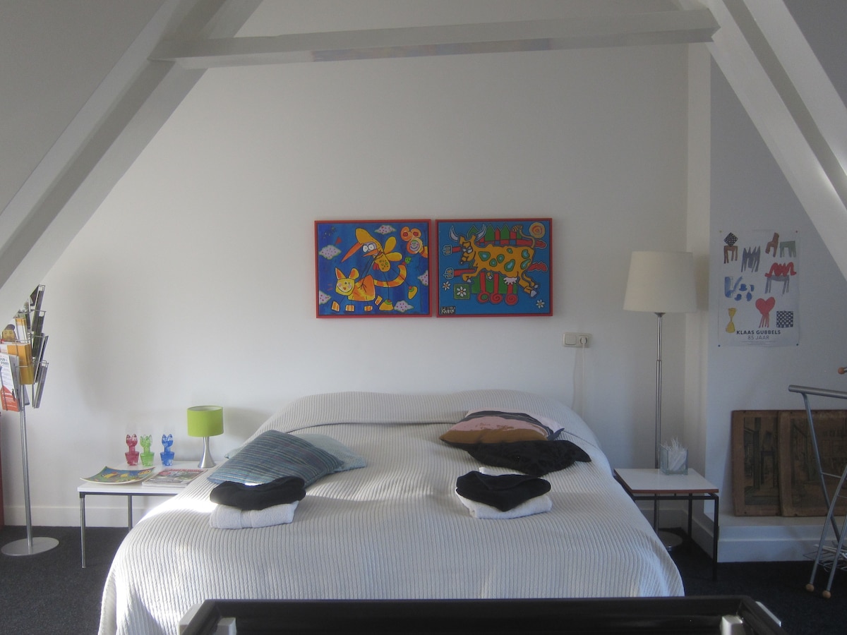 Benvenuti al Landgoed Quadenoord. Questa tipica casa in stile scolastico di Amsterdam è dotata di tutti i tipi di comfort contemporanei di stile di vita. Puoi pensare alla sala di allenamento (gratuita), alla sauna, ai massaggi, alla fisioterapia, al bellissimo giardino del parco e a 2 persone molto ospitali. L'appartamento al piano superiore è arredato con i colori e lo stile della scuola di Amsterdam e inoltre è principalmente piacevole, fare escursioni, mangiare e dormire in questa tenuta speciale.