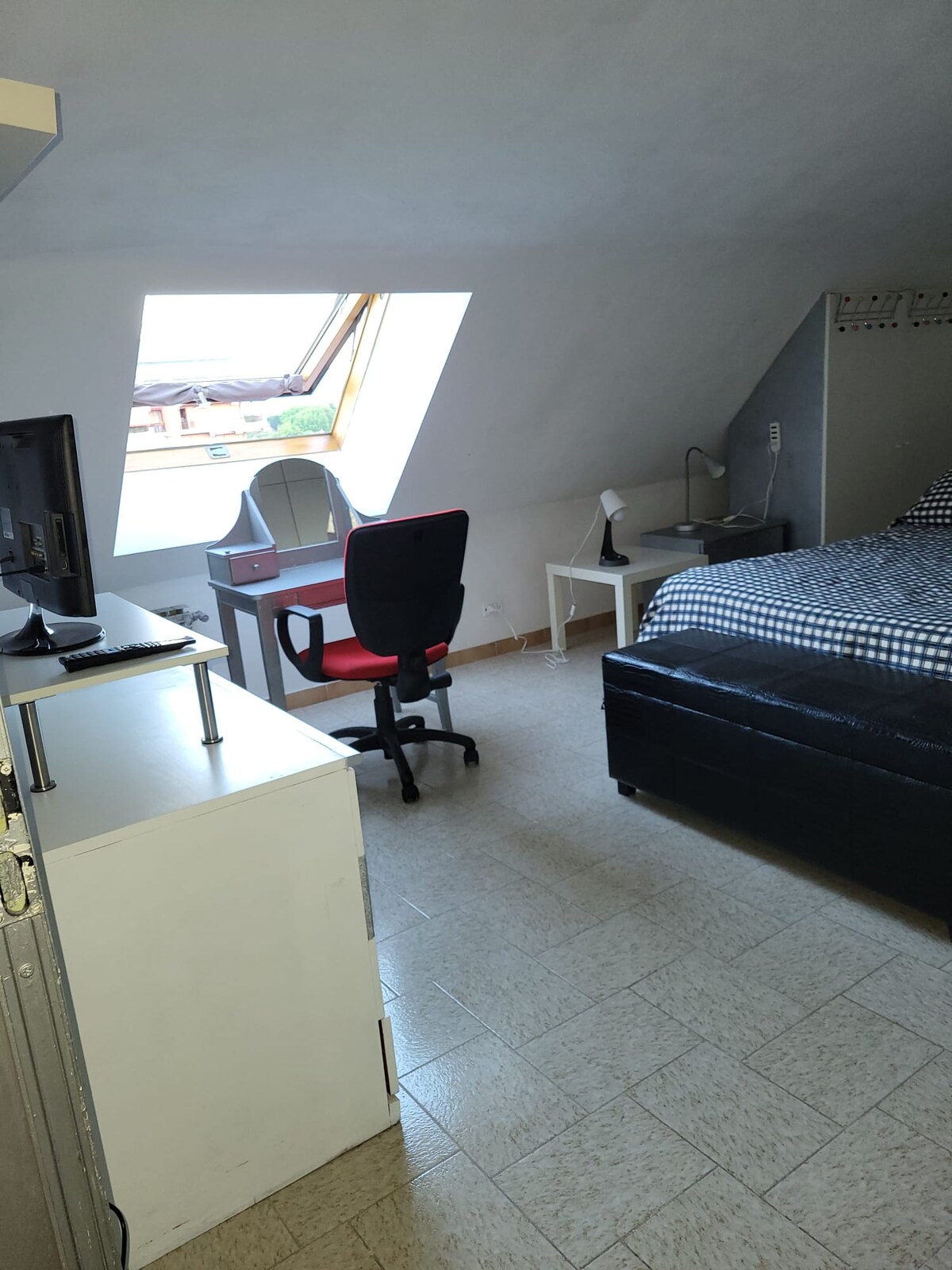 Deliziosa mansarda con due balconi in piccolo condominio di due piani, comoda per raggiungere il centro e la stazione ferroviaria con autobus, tram o metro. In zona potete trovare negozi, bar, ristoranti e mercati rionali. L'appartamento è composto da una camera matrimoniale, una cucina con soggiorno e divano letto. L'alloggio ha connessione wi-fi e aria condizionata.