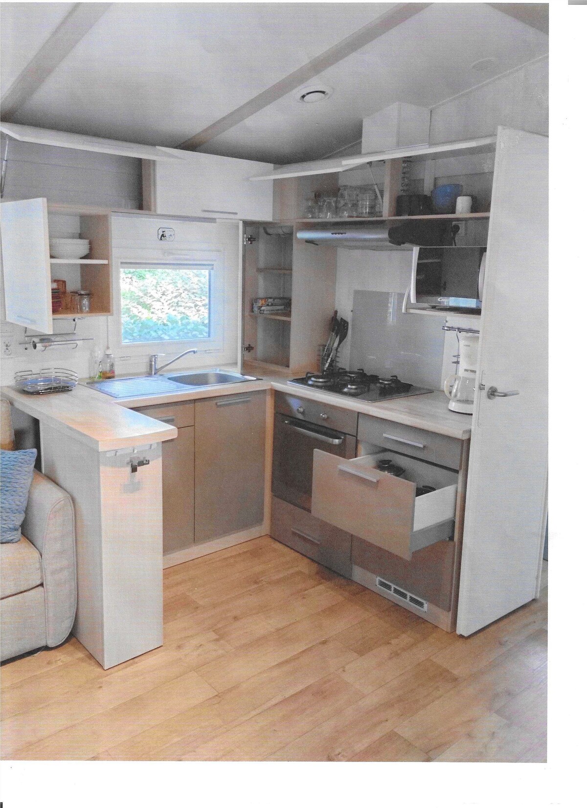 Questo alloggio tranquillo offre un soggiorno rilassante. La casa mobile è composta da un ampio terrazzo chiuso con cucina attrezzata e frigo (vano congelatore). Dispone inoltre di 3 camere da letto tra cui una suite padronale con accesso diretto al bagno. Cucina all'interno con forno, e un secondo grande frigorifero/congelatore. WC separato. Vi invitiamo vivamente a utilizzare le docce comuni del campeggio, più spaziose e più pratiche soprattutto dopo la spiaggia.