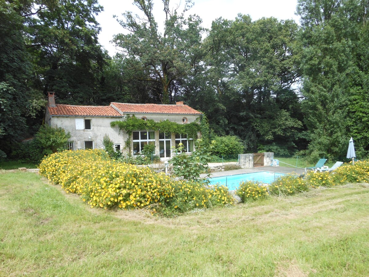 Grande casa antica, completamente ristrutturata. Tranquilla, in piena campagna con il suo ampio giardino circondato da boschi. Vicino al Parco di Pierre Brune, sito di arrampicata, fiume, a 1 ora dal mare, a 45 minuti dal Puy du Fou, a 30 minuti dal Marais poitevin. Sul cammino di Compostela. Passeggiate possibili dalla casa. Ideale per una disconnessione con la famiglia o gli amici.