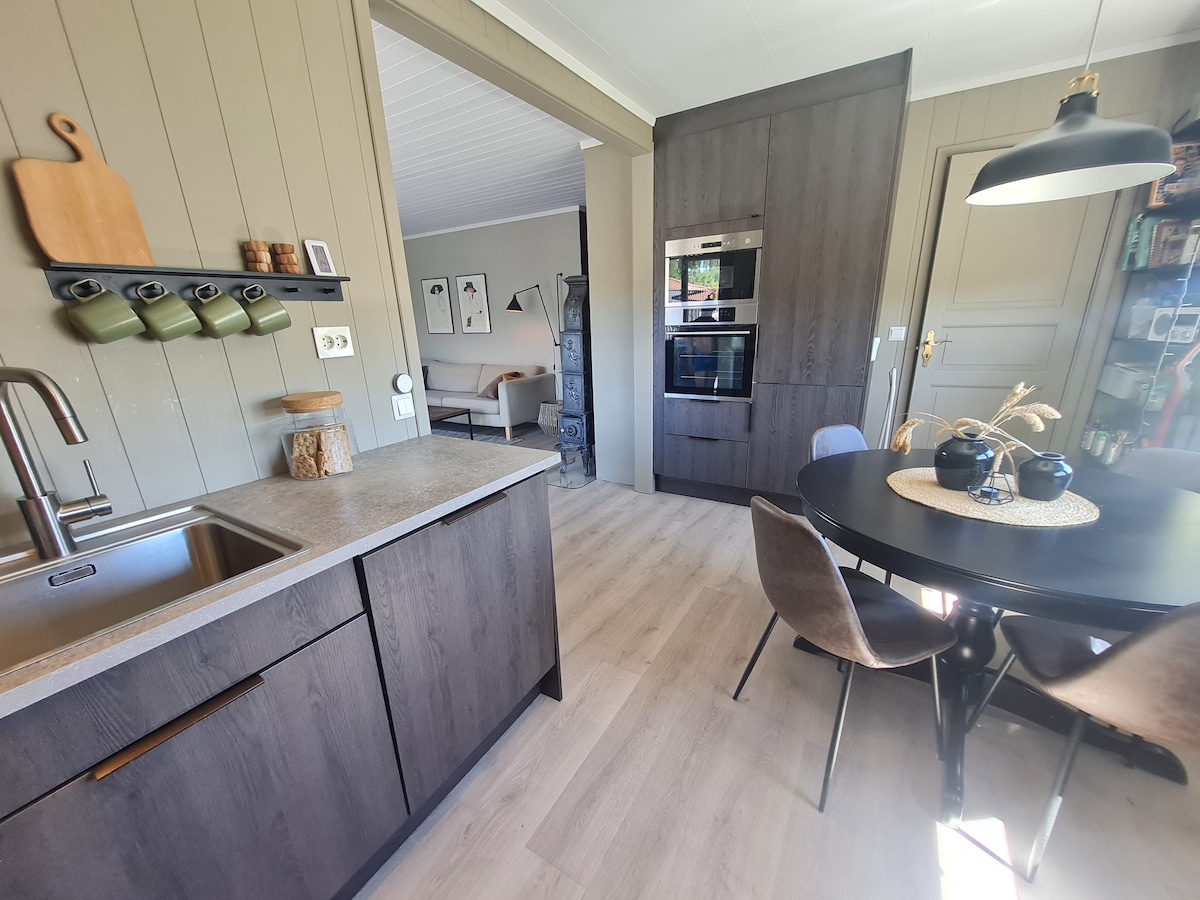 Nuovi giorni tranquilli in una baita in legno ristrutturata con porte dipinte di rose! Zona escursionistica idilliaca e bella, così come l'acqua dolce. La baita è situata da sola, allo stesso tempo in quanto si trova a breve distanza dal negozio e dalla strada principale. Buon riscaldamento con cavi riscaldanti e pompa di calore, così come un delizioso caminetto che rende accogliente ogni notte.