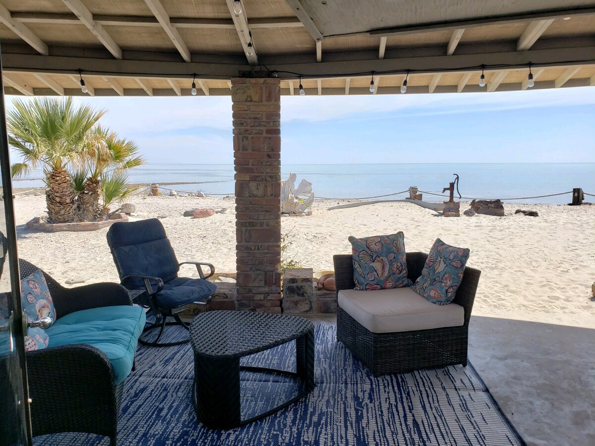 Ammira l'alba o passeggia fino alla spiaggia o alla cantina dal nostro Baja Beach Bungalow, situato nel sicuro Pete's Camp. A soli 180 metri da questa casa unica con 2 camere da letto offre spazi puliti e confortevoli per dormire, 2 bagni completi, splendide viste e un ampio parcheggio. La casa è dotata di una cucina completa e la camera da letto n. 2 ha un piccolo frigo, lavandino e forno a microonde, bagno separato. Il nostro alloggio può ospitare comodamente fino a 9 persone. 3 materassi matrimoniali 1 materasso singolo 1 futon 2 divani