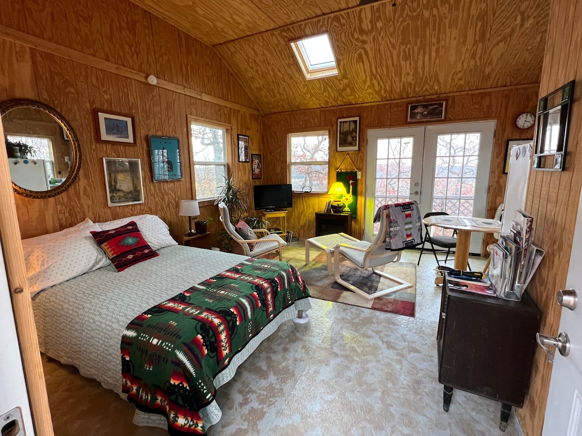 This cozy cottage is set on five acres of scenic countryside just north-east of Tulsa. I designed and built this 480 square foot home for myself and lived in it happily for five years. But, now I’ve moved on to my next project and I’m eager to share this cottage with my guests! The house gets beautiful light, has a very comfortable bed, and is ideal for single travelers and couples. Take a soak in the tub after a long day on the road and feel your cares melt away. Stay a while, relax.