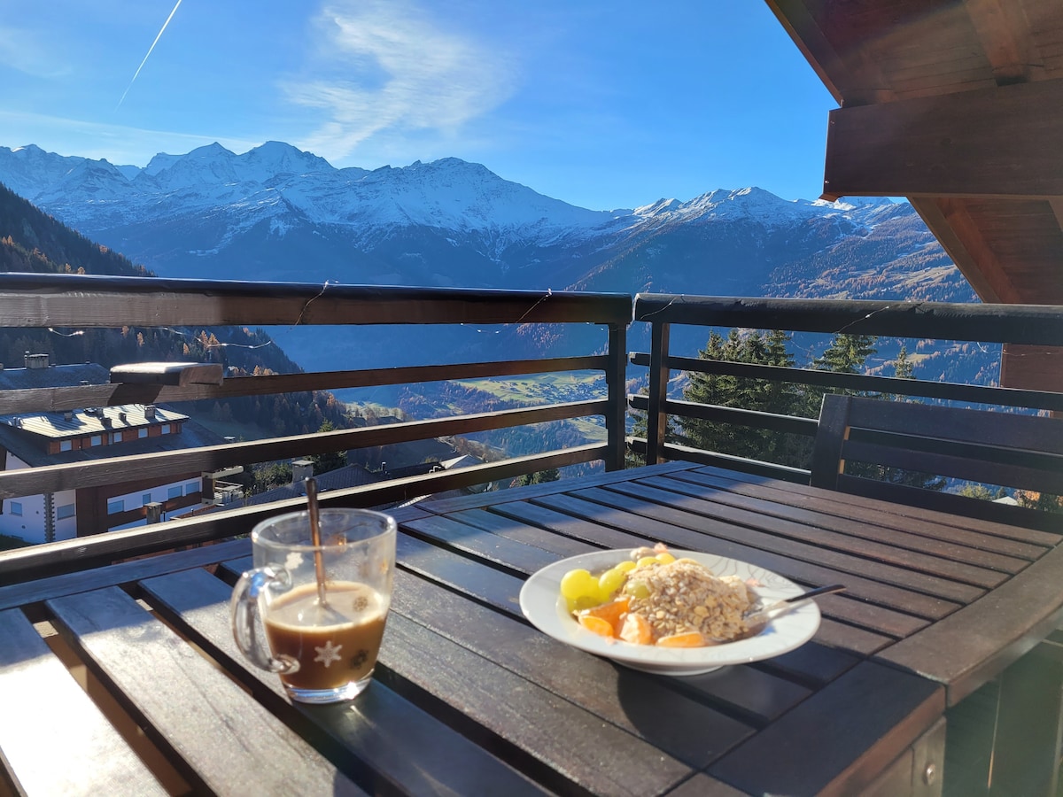 Grazioso monolocale luminoso, con balcone con una splendida vista sul villaggio e sulle montagne. Idealmente situato nel centro del villaggio sopra la Migros e altri servizi (Denner, ristoranti, bar, farmacia, lavanderia, centro medico ecc.). Davanti all'edificio fermata dell'autobus " Montaney" della navetta gratuita per Médran. Perfetto per un soggiorno di due persone.