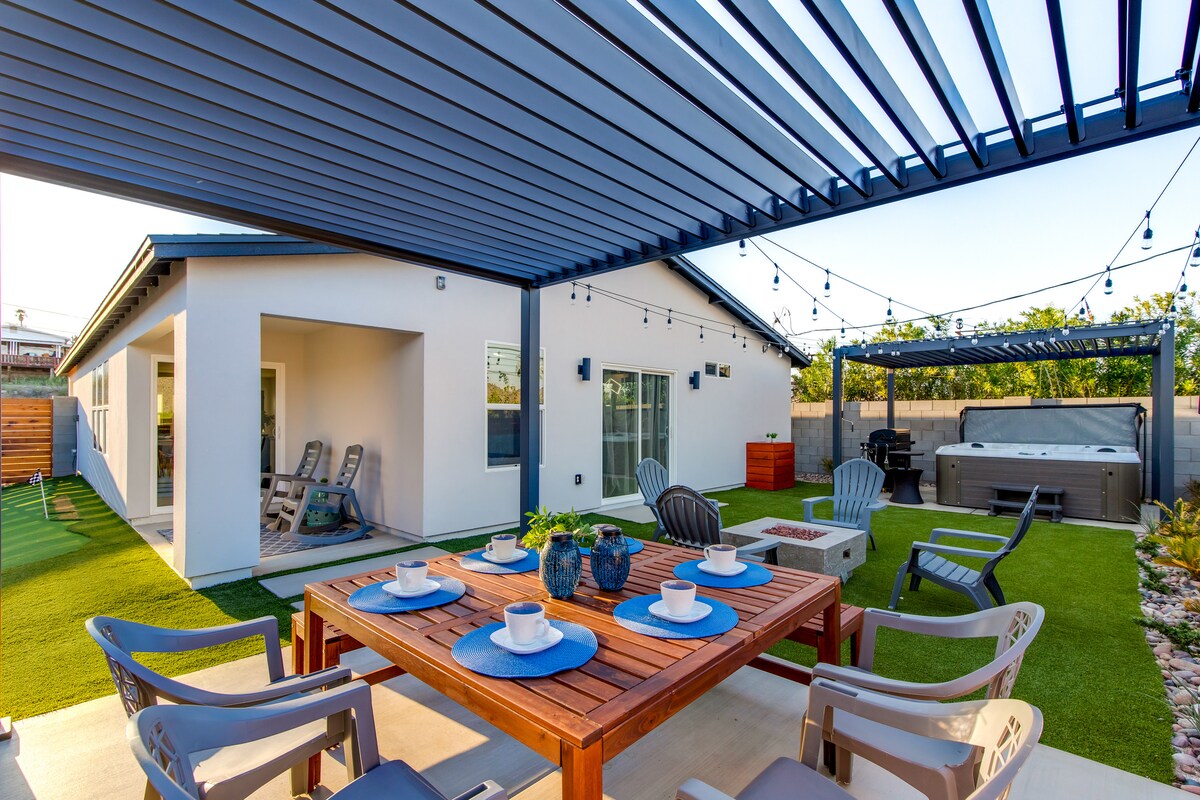 Scopri il nostro rifugio a Phoenix, situato in posizione centrale e perfetto per gli incontri grazie alla sua ampia zona giorno, alla smart TV da 65 pollici e alla spaziosa cucina. Dispone di una sala da pranzo per dodici persone, una zona pranzo all'aperto per otto e cinque camere da letto. Il punto forte è la vivace area piscina all'aperto, completa di braciere, aree relax e palme, ideale per il relax o per giocare attivamente. Nelle vicinanze, immergiti nella vivace cultura di Phoenix con ristoranti e boutique di alto livello, rendendo il tuo soggiorno avventuroso e rilassante.
