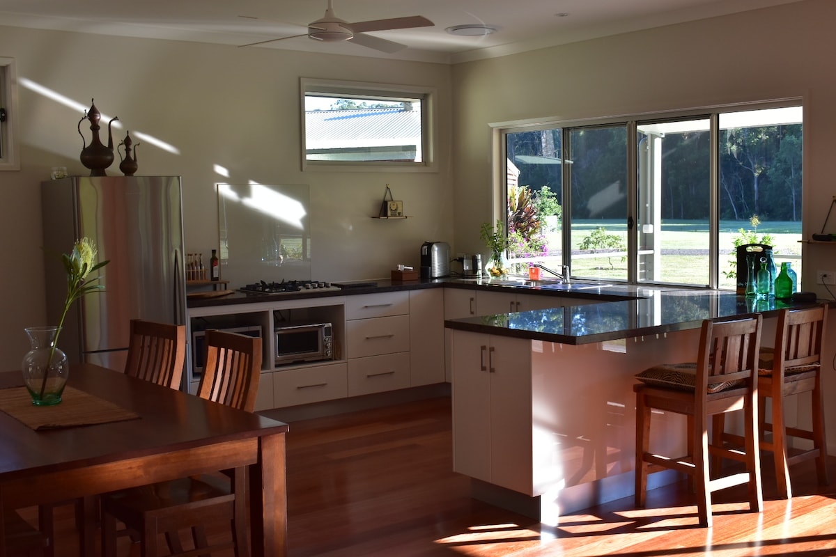 Mirembe è una parola ugandese che significa pace e tranquillità; questo descrive perfettamente la nostra proprietà di 45 acri. Il cottage è situato privatamente ai margini della nostra foresta: siediti sulla veranda a guardare i canguri, cerca i koala di notte; di notte guarda il cielo per vedere il milione di stelle, le lucciole nel torrente o nelle fiamme del focolare. Passeggia lungo i nostri sentieri privati: la natura ti circonda. Colazione fornita e alcune cene surgelate di produzione locale nel congelatore, ma non gratuite.