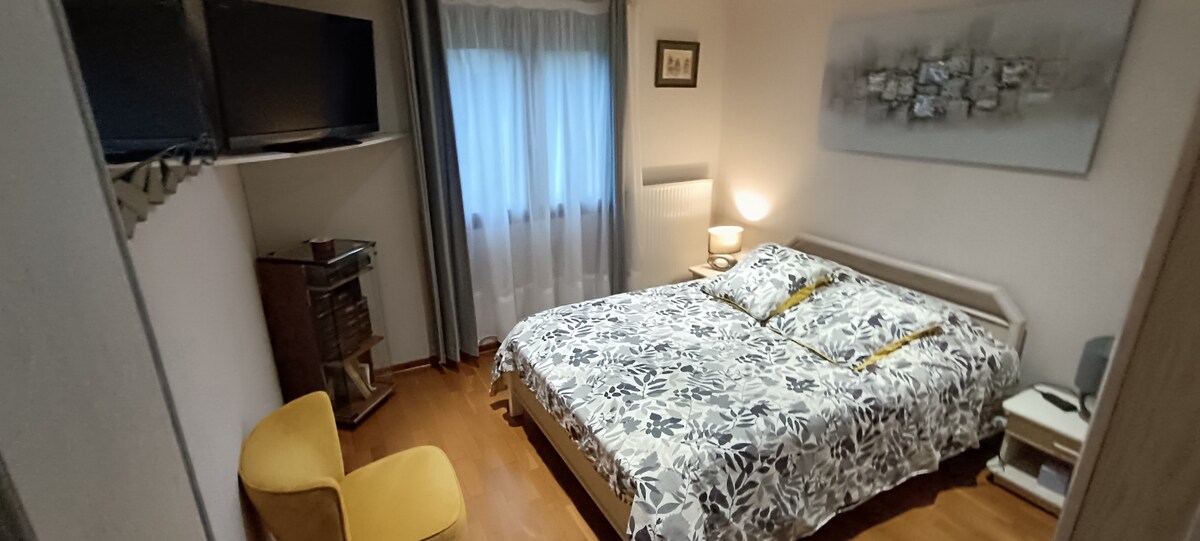 Una spaziosa camera privata (17m²), chiusa a chiave, con scrivania, spogliatoio. Un grande bagno si affaccia sul pianerottolo comune con la vostra camera (doccia, vasca, wc). Anche a vostra disposizione su questo stesso pianerottolo: un frigorifero, un forno a microonde e un bollitore. Una cucina con zona pranzo, un soggiorno con TV sono accessibili ai viaggiatori. Questi ultimi sono condivisi con il tuo noleggiatore. Una seconda camera è in affitto se necessario (1 letto 2 persone)