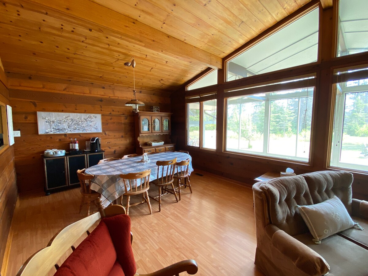YEAR-ROUND Cabin that lets one relax with family and friends, yet large enough to find your own space to read a book. Modern furniture two wood-burning fireplaces Outdoor firepit bbq, Satellite tv, Hot Tub, Open year ROUND! books and movies CLEANING FEE INCLUDES FIREWOOD WATER DELIVERED and Bottled SPRING Drinking WATER, HOT TUB MAINTENANCE Higher Winter Usage costs SEE NOTES TO REVIEW The bunkhouse closed during winter. opened on request, additional charge for heating