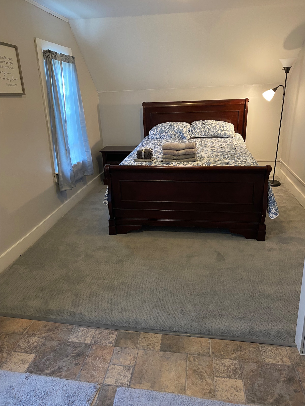 Ti diamo il benvenuto nel nostro bellissimo appartamento executive a 2 piani situato nel centro di Fredericton. Ci troviamo in una strada tranquilla, a un paio di chilometri dall'autostrada, da Tim Hortons e da una stazione di servizio. Il centro città dista solo pochi minuti, mentre il centro commerciale è raggiungibile in 5 minuti di auto. Siamo anche vicini a molti sentieri escursionistici e piste da sci per gli amanti delle attività all'aperto. Questo appartamento di recente costruzione è a pianta aperta, dispone di piani di lavoro in granito, 1,5 bagni e lavanderia. Il soggiorno e le camere da letto sono soleggiati!