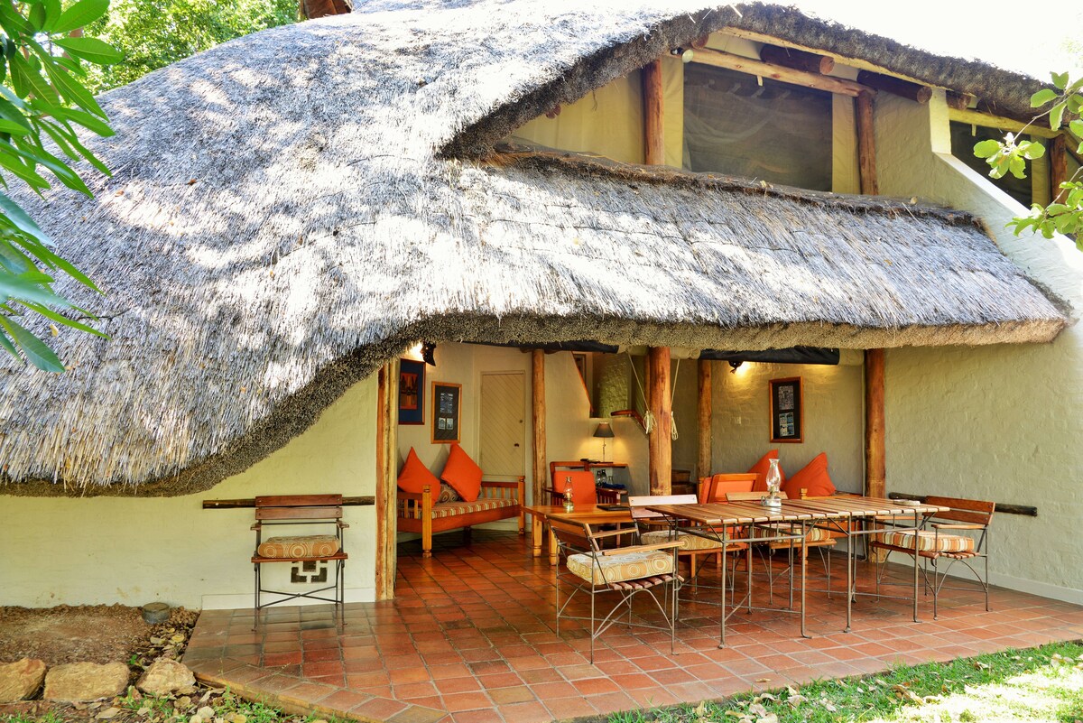 Rilassati in un elegante cottage con 2 camere da letto e bagno privato sotto alberi di teak ombreggiati su una strada tranquilla a pochi minuti dalla città di Victoria Falls. Goditi il comfort e la privacy con una piscina, un giardino lussureggiante e una spaziosa veranda, ideale per il caffè del mattino e i drink al tramonto. All'interno troverai camere da letto con aria condizionata, Wi-Fi, Netflix, un ampio soggiorno e una cucina completamente attrezzata. Perfetto per l'avventura, il romanticismo o una vacanza in famiglia, vicino alla natura e vicino all'azione.