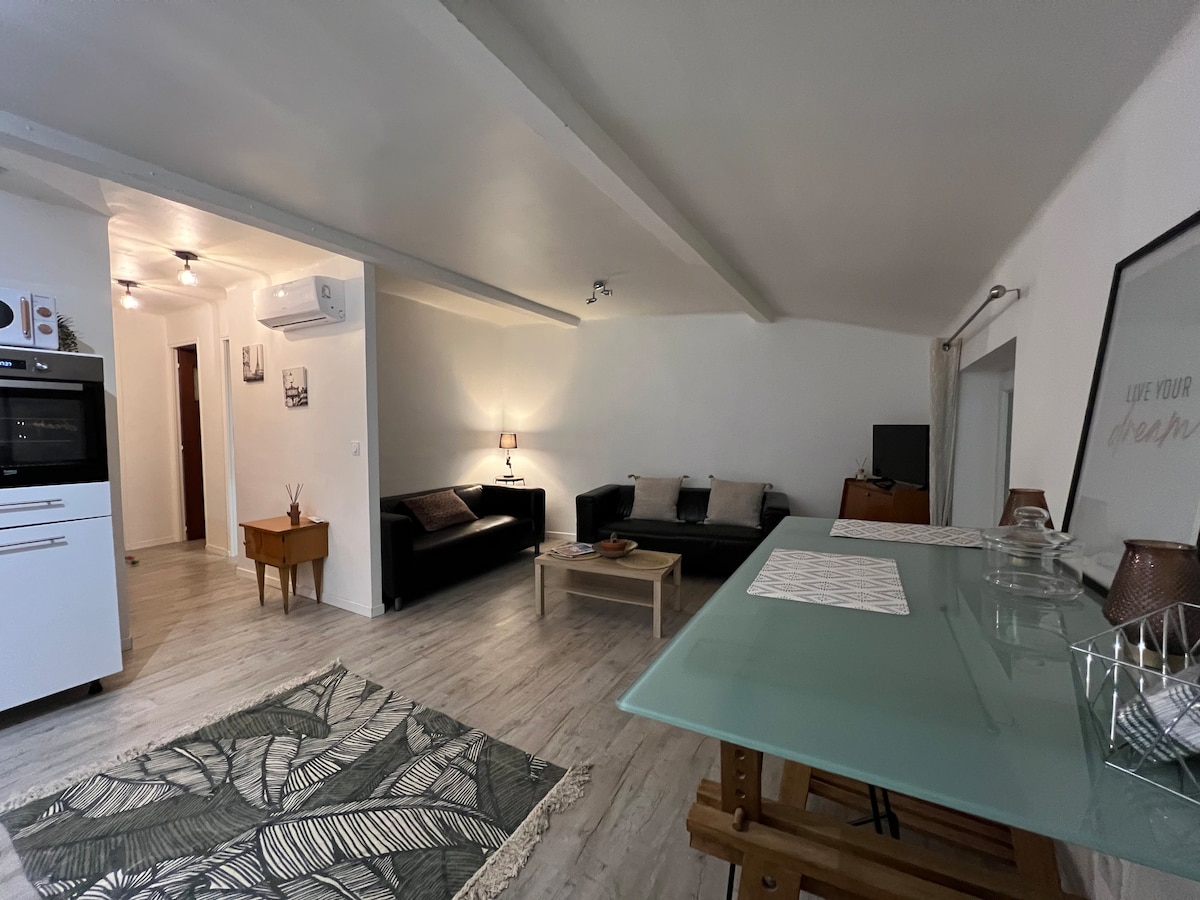Logement attenant à ma résidence principale avec logement totalement indépendant. Parking avec emplacement pour votre véhicule devant votre porte d’entrée. Terrasse au niveau du parking avec table, chaises ,parasol, barbecue et deux bains de soleil. Votre logement se trouve dans une impasse dans un quartier calme. Le centre du village se trouve à un kilomètre à pied. Le logement est équipé d’une climatisation réversible. Appartement de 30 m2 + 15 m2 de mezzanine avec une chambre fermée .
