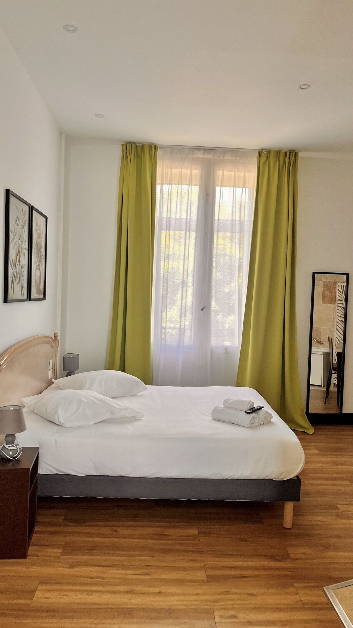 Camera doppia di 19m² con aria condizionata, bagno privato con doccia e asciugacapelli. Il tutto godendo dei servizi di un hotel: pulizia inclusa su richiesta, colazione gourmet e locale e un'offerta di ristorazione in loco. Con la tranquillità di un'accoglienza professionale a tutte le ore.