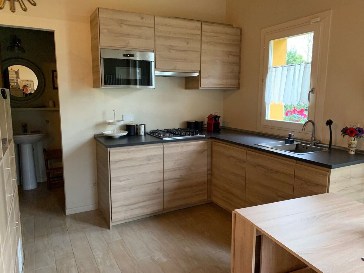 Piccolo appartamento con ingresso indipendente situato al piano terra, con ampia veranda vista giardino. Cucina attrezzata, bagno finestrato con doccia, soggiorno con divano letto, camera matrimoniale e guardaroba. Budrio è un paese tipico del bolognese ricco di storia e comodo per raggiungere Bologna, Ferrara e Ravenna. Supermercato a 100 metri, farmacia a 500 metri, parco di fronte a casa.