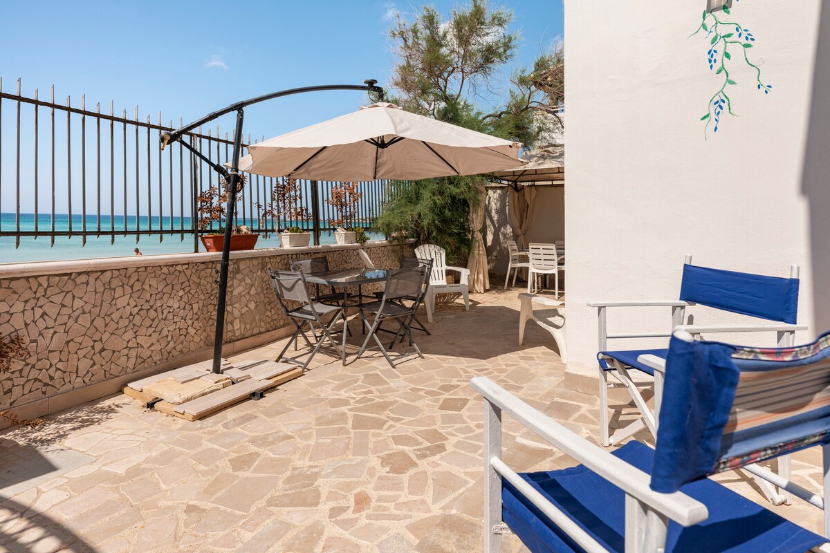 Recently renovated seafront apartment with breathtaking sea views and romantic sunsets. Located between two charming coastal villages linked by a beautiful seaside walk, in one of the most sought-after areas of Salento. Cafés, restaurants, beach, local market, and a pharmacy are all within short walking distance. A scenic coastal road runs between the house and the sea, offering easy access to the waterfront. Perfect for guests who want to explore Salento while waking up to a sea view.