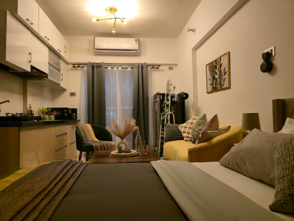 Step into Stillspace — a design-led studio where calm meets intelligent living. Lights adapt to your mood, music flows softly through the room and the home powers down when you say goodnight. Every detail is crafted to make city life feel effortless - thoughtful, composed and quietly luxurious. Alexa-enabled smart living for seamless comfort Cozy queen bed, soft linens and curated lounge Compact, well-equipped kitchen Central location — minutes from Koregaon Park, Kalyani Nagar cafés & nightlife