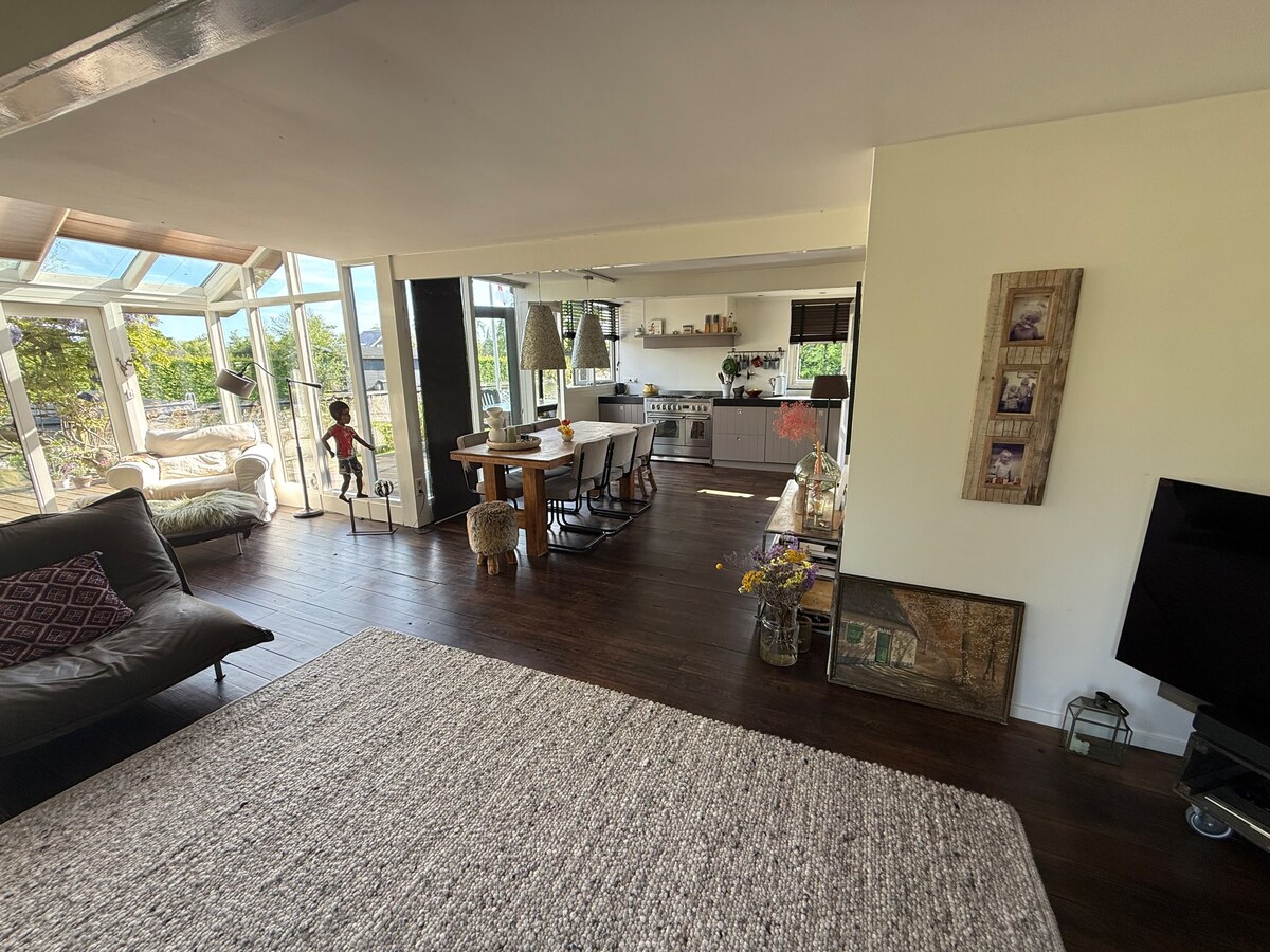 Il nostro B&B è dotato di tutti i comfort moderni, come una cucina moderna, illuminazione Philips Hue, smart TV e Quooker. L'accogliente veranda è completa di una lussuosa vasca idromassaggio e di una stufa a legna. Il B&B con ampio giardino privato e vista libera è completamente separato dal casale da una recinzione ed è accessibile solo a voi come ospiti. Dalla sauna finlandese a botte sulla terrazza adiacente si può godere della vista sui pittoreschi prati della città. Una deliziosa colazione a scelta è facoltativa.