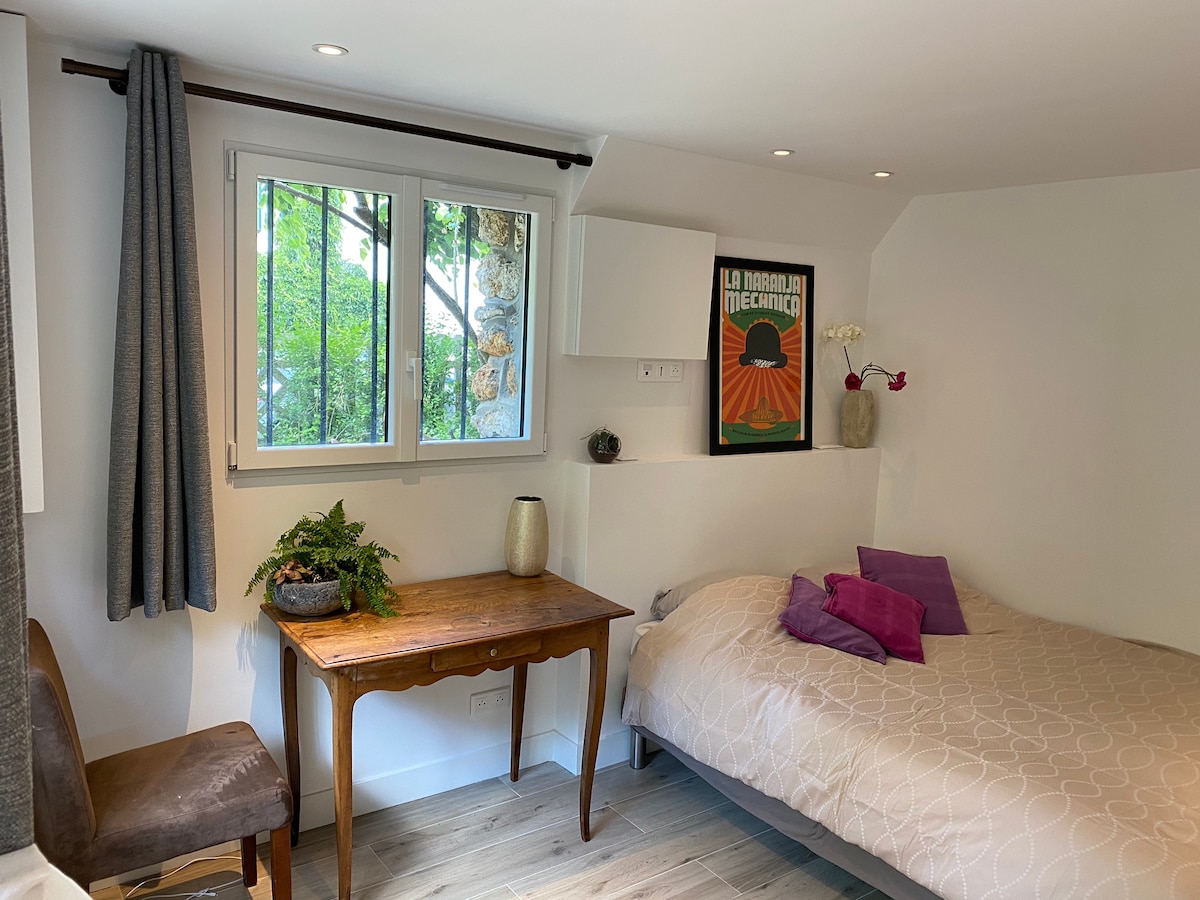 Independent 22 m² studio in a charming house, nestled in a quiet private lane in the heart of Versailles. Ground-level access via a terrace. Large queen-size bed, electric shutters, underfloor heating, modern bathroom with walk-in shower and towel warmer. Equipped kitchenette (microwave, fridge, coffee maker). Fiber Wi-Fi and free parking in front of the house. Perfect for a peaceful and comfortable stay for two.
