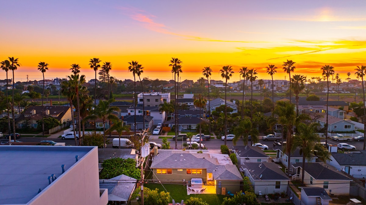 Escape to this stunning 2-story beach house with ocean views from nearly every room. Soak up the sun on the rooftop deck, unwind by the fire pit, play in the game room, or enjoy the open-concept living area with a fully equipped kitchen and central AC. Just steps from the beach and 2.2 miles from Legoland, this 3BR/2BA retreat offers a washer/dryer, ample parking, and easy self check-in—everything you need for the ultimate coastal getaway.