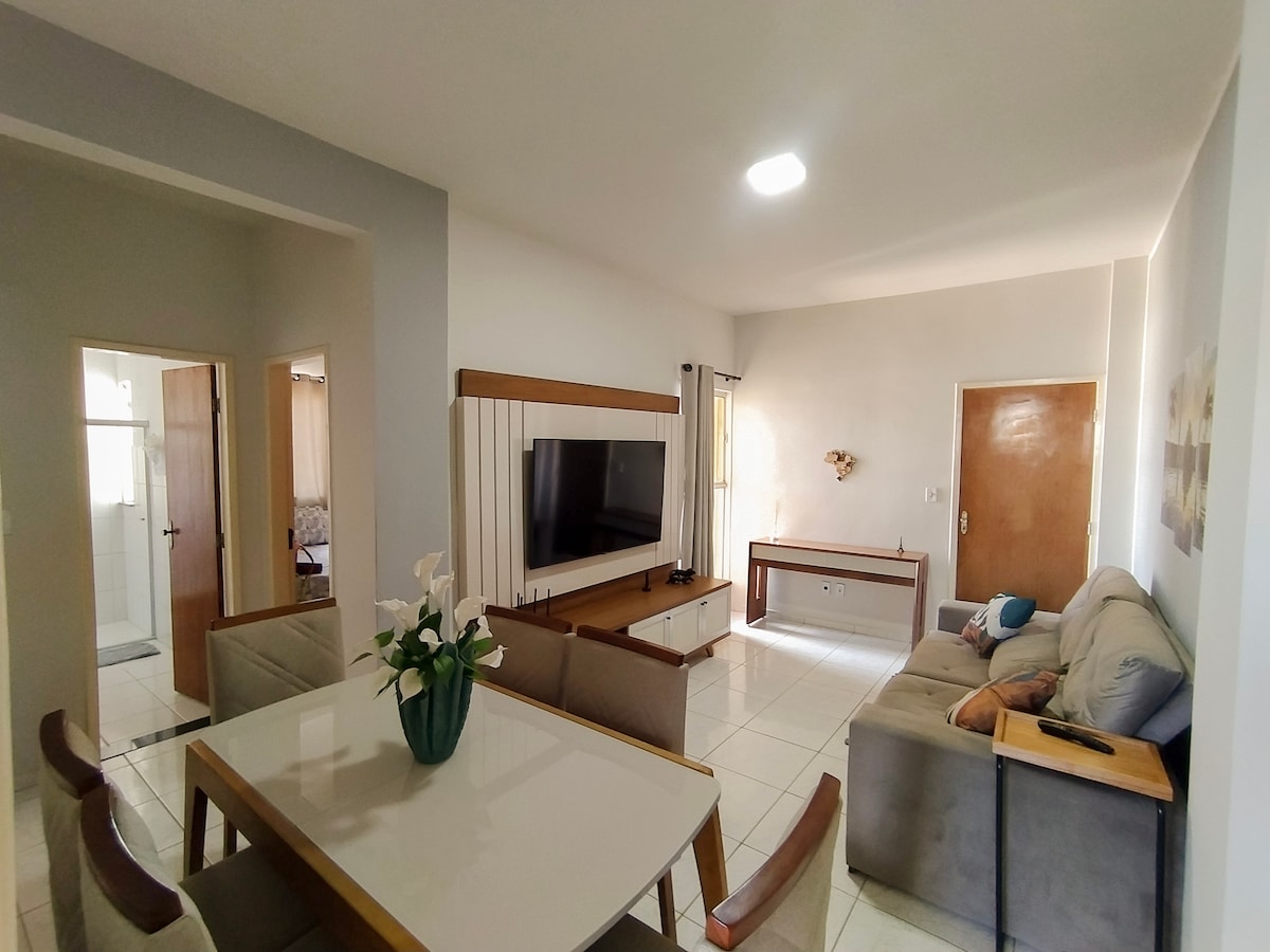 Se você busca conforto, praticidade e segurança, esse é o lugar ideal para a sua estadia! O apartamento fica em um condomínio fechado com portaria 24h, excelente estrutura e fácil acesso a tudo o que você precisa. Localizado em uma área nobre. Espaço é moderno, possui sauna, academia equipada, brinquedoteca, parquinho, sala de jogos, quadra. Local limpo e totalmente equipado: Wi-Fi, 3 Tvs, camas, lençóis, toalhas, cobertores, cozinha com todos os utensílios para preparar suas refeições.