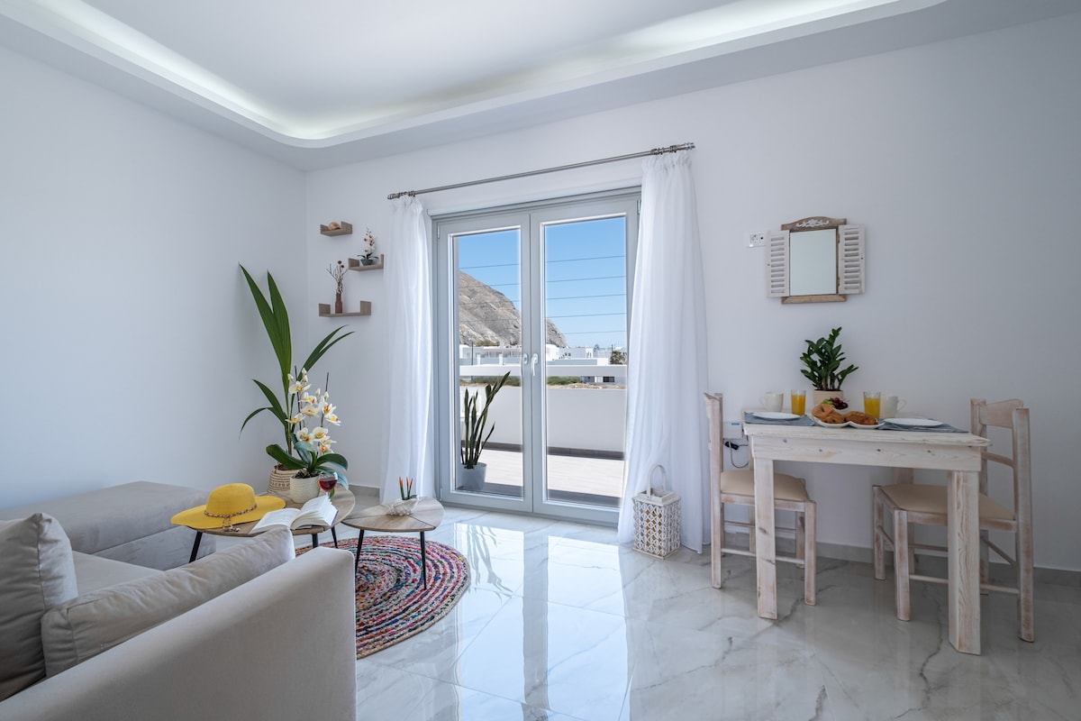 A cozy private studio 27 square meters to rent within 10 minutes walk from the black beach of Caldera. In the center of Akrotiri and just a minute away from the nearest bus stop to Fira (20 min). The beautiful location for every visitor. 15-minute walk takes you to the visitable Prehistoric City of Akrotiri and the Red Beach The neighborhood is very lively with several restaurants. There is also an option for Brunch, coffee shop Groceries, bakery.