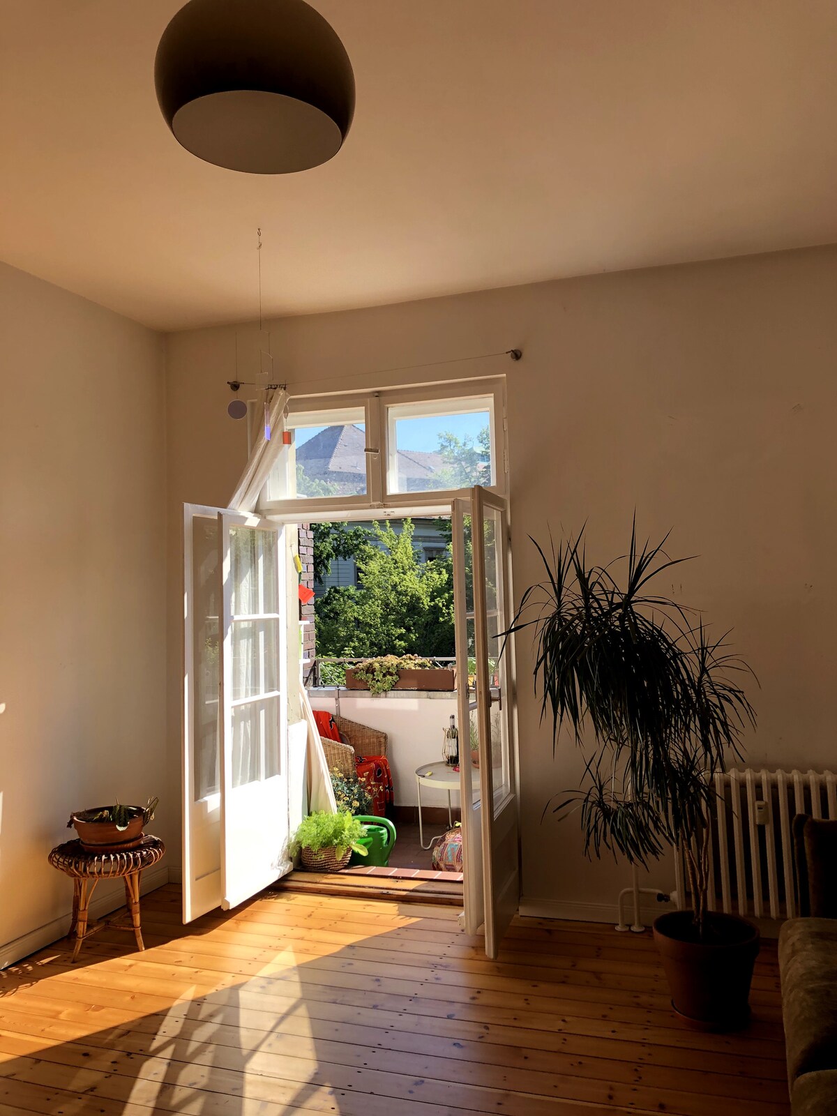 Appartamento soleggiato ristrutturato nel cuore di Berlino. L'appartamento è composto da due camere, di cui un'ampia camera da letto tranquilla affacciata sul cortile interno e zona giorno esposta a sud con divano comodissimo di grandi dimensioni, tavolo da pranzo e scrivania regolabile in altezza. Fuori dal soggiorno, si trova un balcone arredato con tavolo e sedie e molta luce solare diretta. C'è un bagno modernizzato con lavatrice e doccia in piedi, nonché una cucina separata con lavastoviglie e utensili da cucina completi.