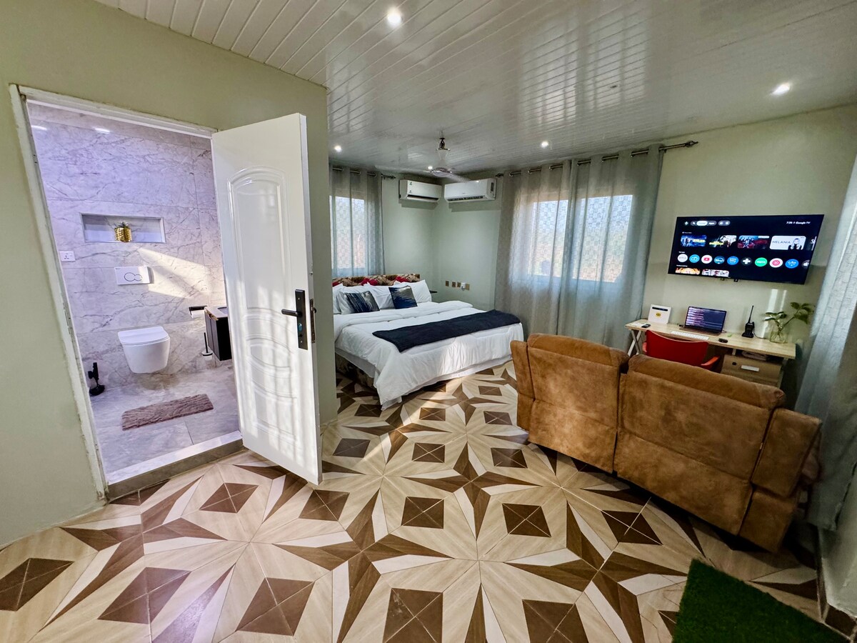 Zivah Estate Airbnb embodies the essence of luxury and comfort, providing an idyllic retreat. Nestled near Tema Community 25 Mall and Prampram Beach, this private residence offers 24-hour security service and modern amenities, including WiFi and local and international TV stations. The cozy beds and pillows promise a restful sleep and sweet dreams. All you require is at your disposal which makes your stay comfortable. Book your stay at Zivah Estate Airbnb and enjoy your vacation.