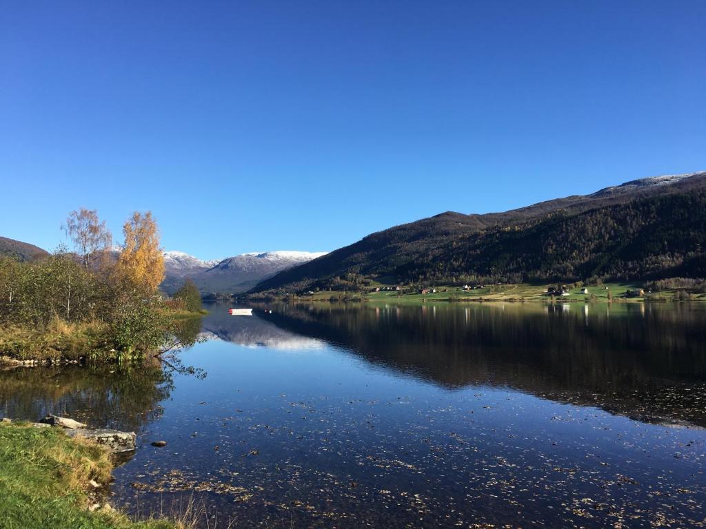 Nyt eit rolig gårdsopphold på ei sjelden perle kun 15-20 minuttar frå Voss sentrum. Et rolig sted å være for både for par eller større familier. Smak på våre selvproduserte produkter fra bigården, eller av de mange grønnsaker, kjøtt, frukt og bær som produseres. Nyt stillheten på vannet i robåt eller SUP brett, eller helt alene på din private strand. Opplevelsen i jacuzzi på kveldstid er helt magisk. Våkne opp til soloppgang over innsjøen med utsikt direkte fra senga, eller foran peisen.